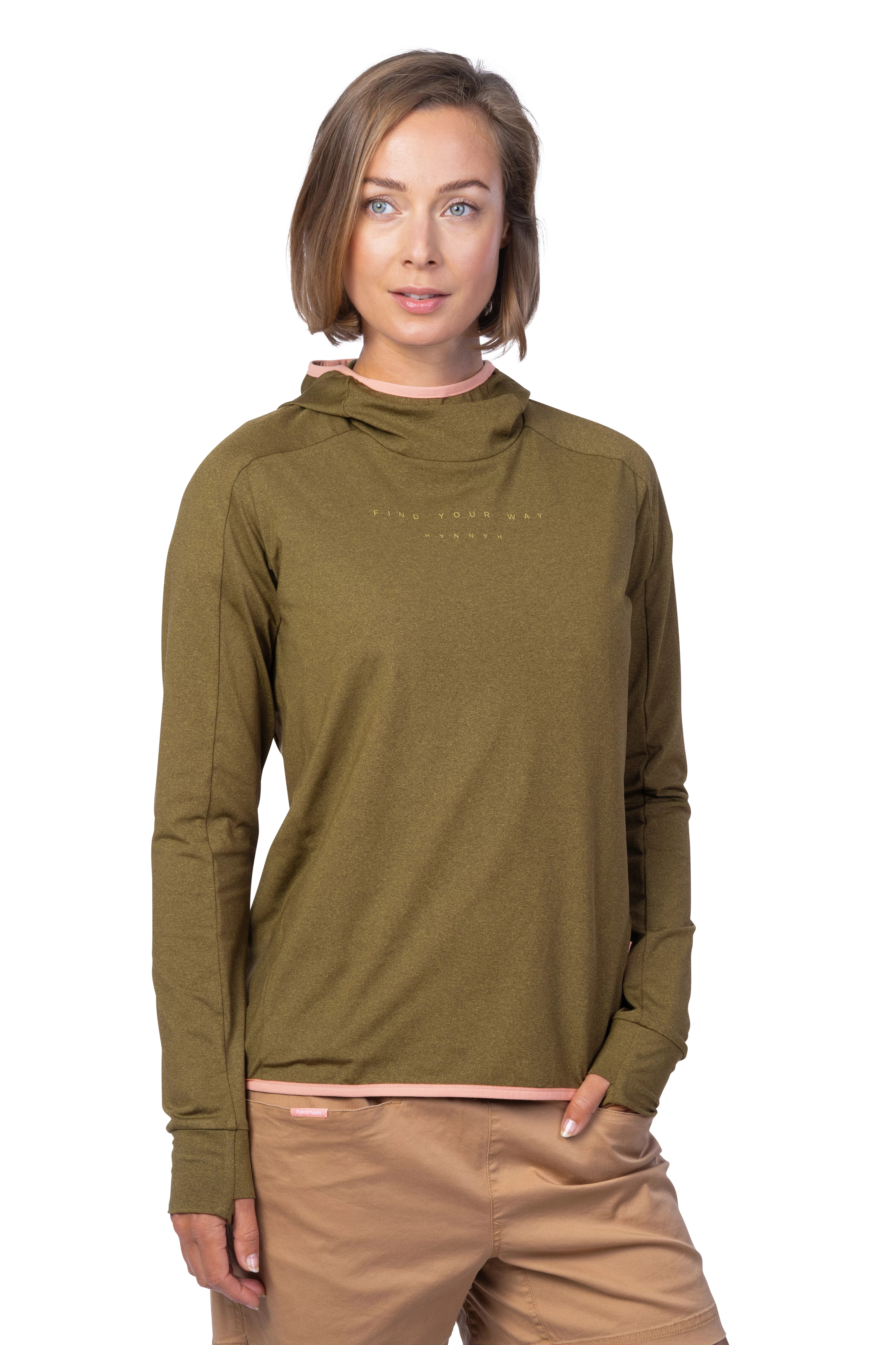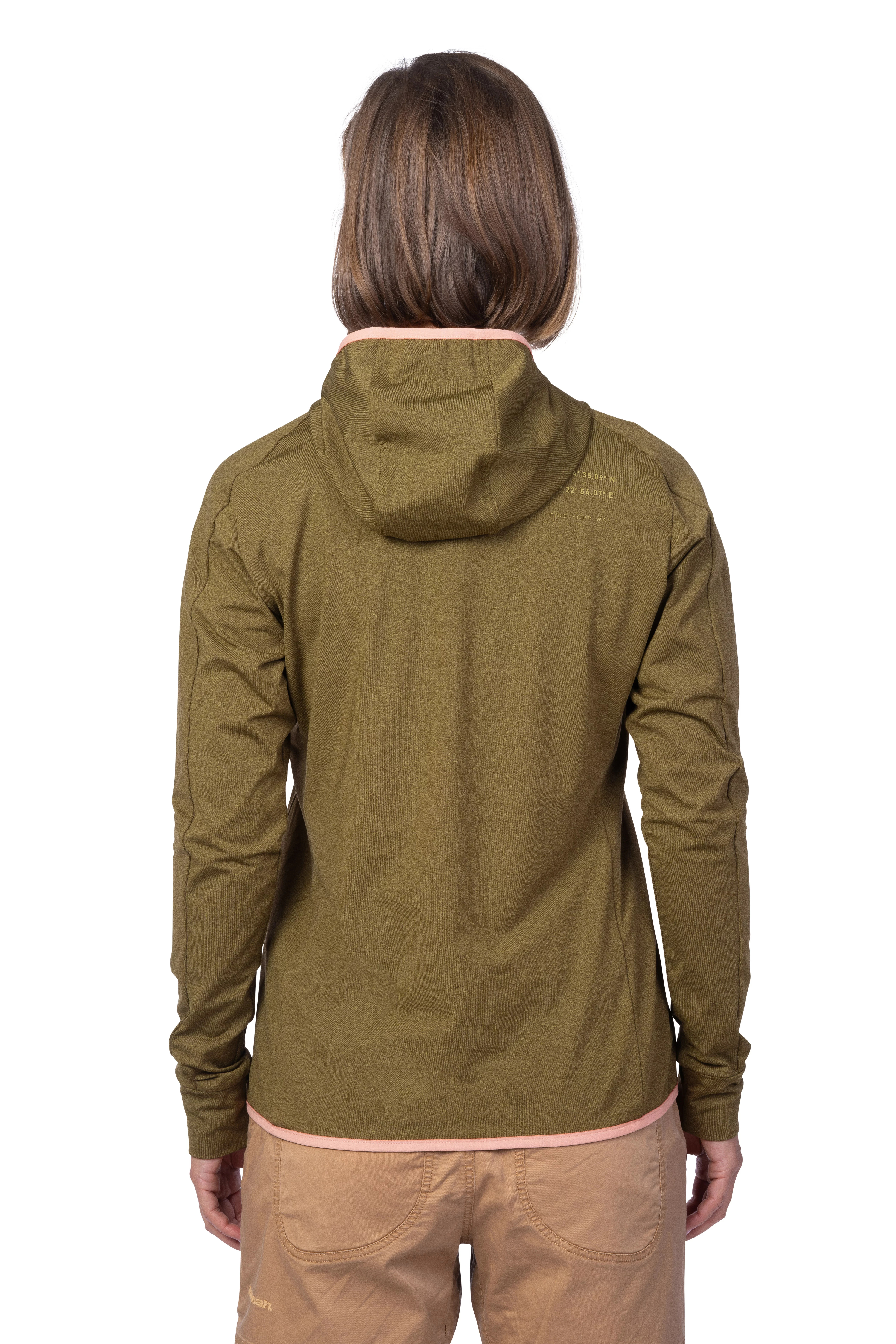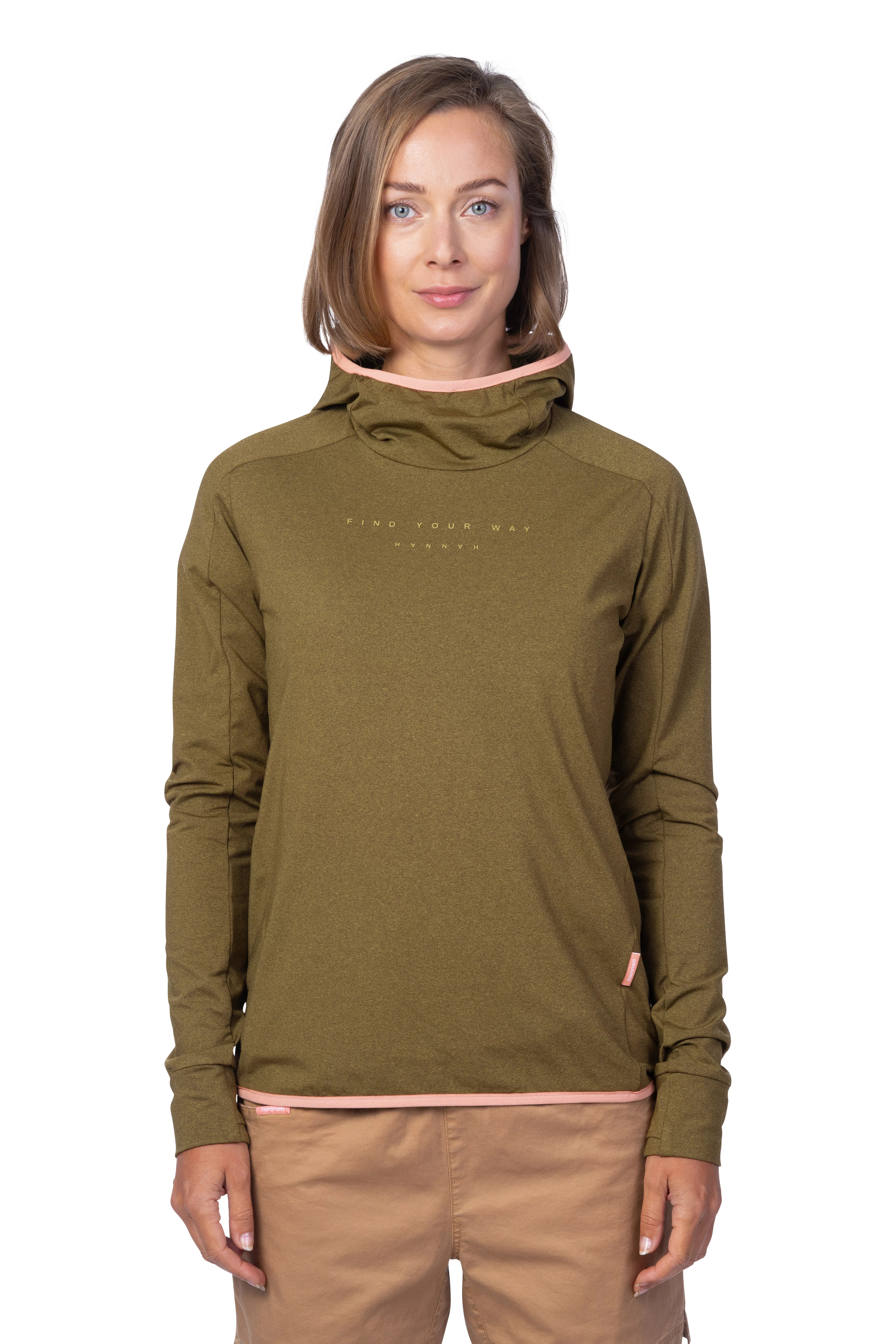 Sportovní střihově volnější mikina s technickými prvky. Materiál Polarstretch Lite je prodyšný, vysoce elastický ve všech směrech a lehký. Snadno se udržuje, rychle schne a má dlouhotrvající životnost včetně vysoké mechanické odolnosti. Širší stojáček kolem krku volně přechází do kapuce lemované gumou. Anatomicky tvarované rukávy jsou zakončené pružným lemem s otvorem na palec. Na zadní straně mikiny najdeš souřadnice domovského sídla Hannah, kde se rodí všechny naše nápady a styly, které tě provázejí na každém kroku. Mikina je ideální jako druhá izolační vrstva pro přechodné období outdoorových a sportovních aktivit.