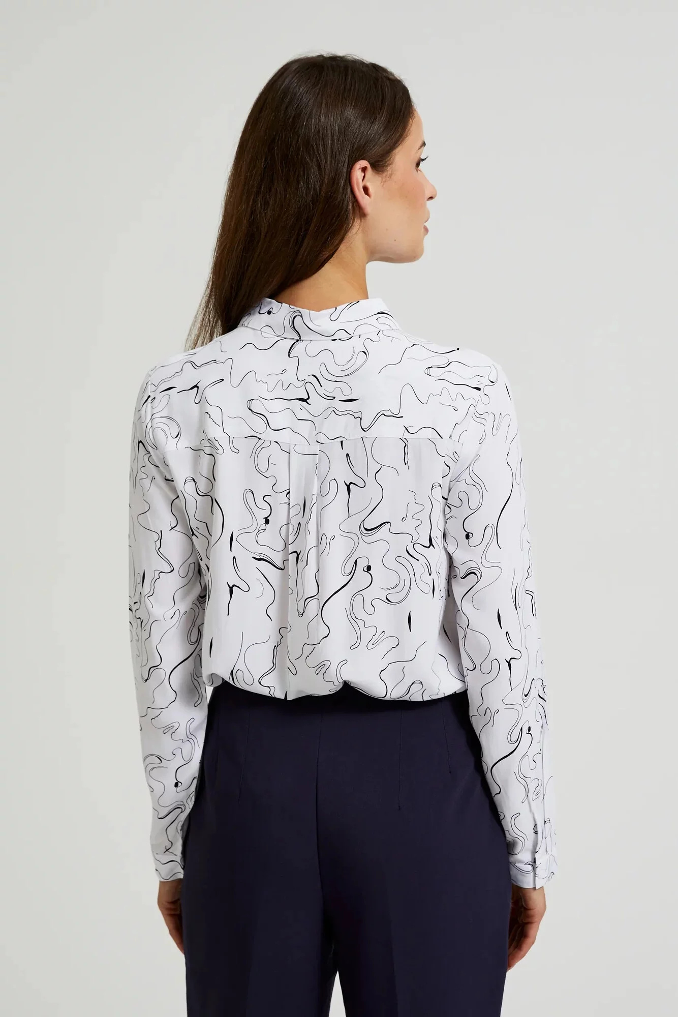 100% VISKÓZA Dámská košile v bílé barvě s unikátním vzorem se ideálně hodí jako doplněk Vašeho šatníku. Vyrobena z příjemné viskózy, která zajišťuje pohodlí při nošení. Dlouhý rukáv s manžetami a límečkem dodávají eleganci a šmrnc. Tato stylová košile bude ideální pro mnoho různých příležitostí, jak do práce, tak na setkání s přáteli. Dokonale se hodí jak v kombinaci s džíny, tak s elegantními sukněmi. Díky univerzálnímu vzoru se hodí k mnoha stylizacím, dodávajíc jim svěžest a originalitu.