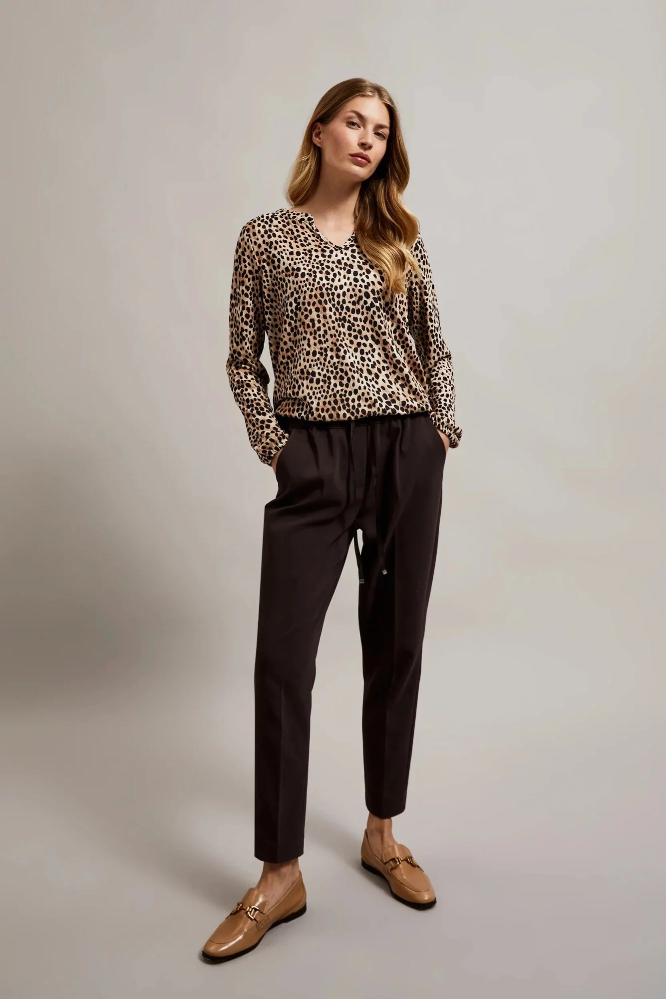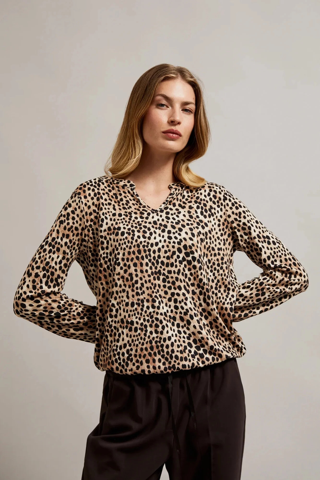Dámská halenka se zvířecím potiskem MOODO - béžová Velikost: 38