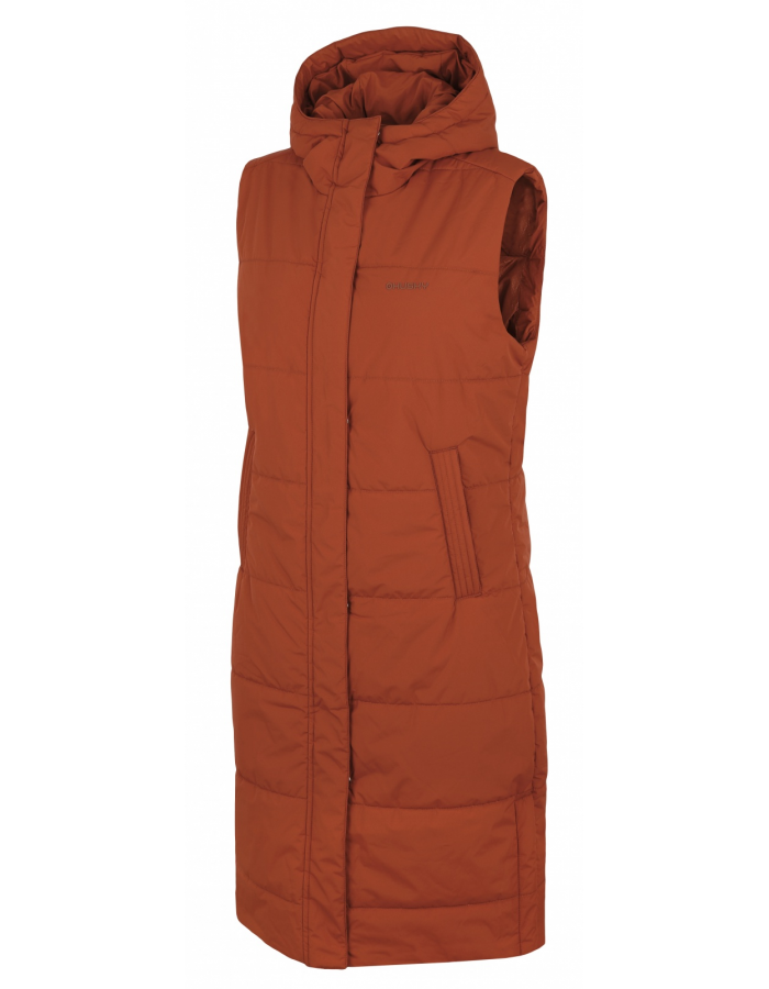 Dlouhá dámská prošívaná vesta s kapucí NILO L je stylový kousek, který ti v šatníku nesmí chybět. Pohodlná a zateplená vesta s podšívkou a membránou tě bude doprovázet na procházkách městem i při různých outdoorových aktivitách.