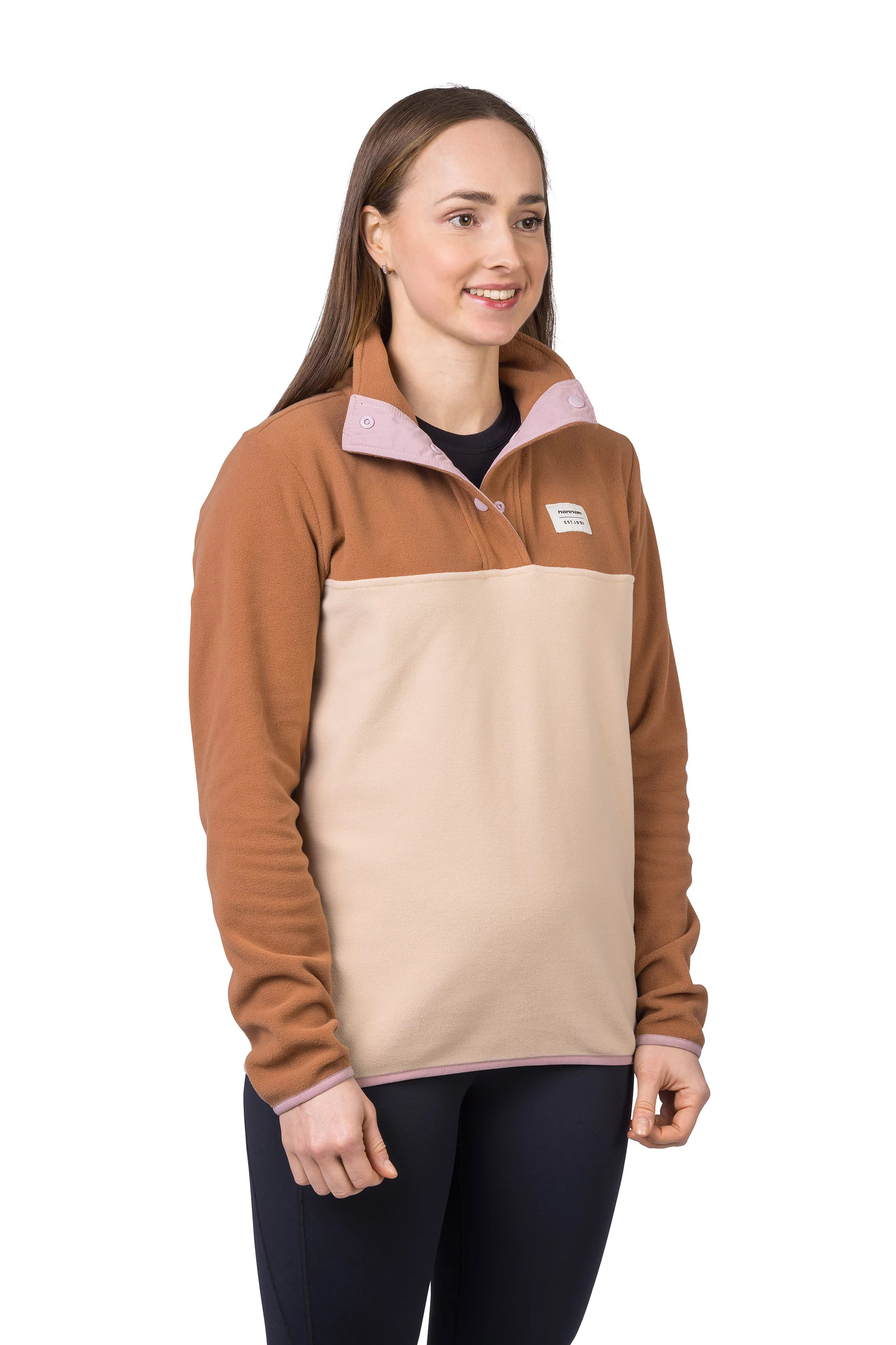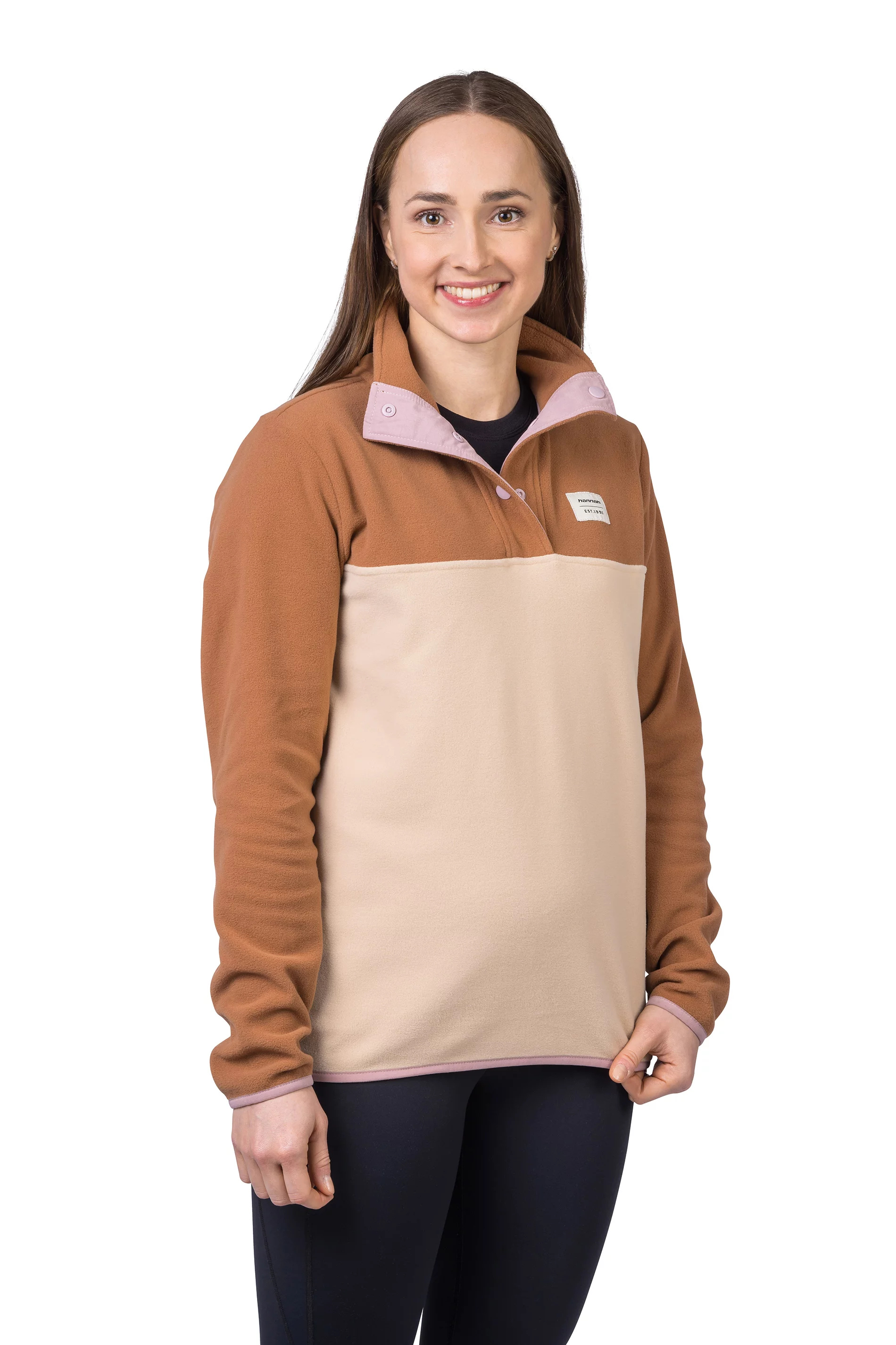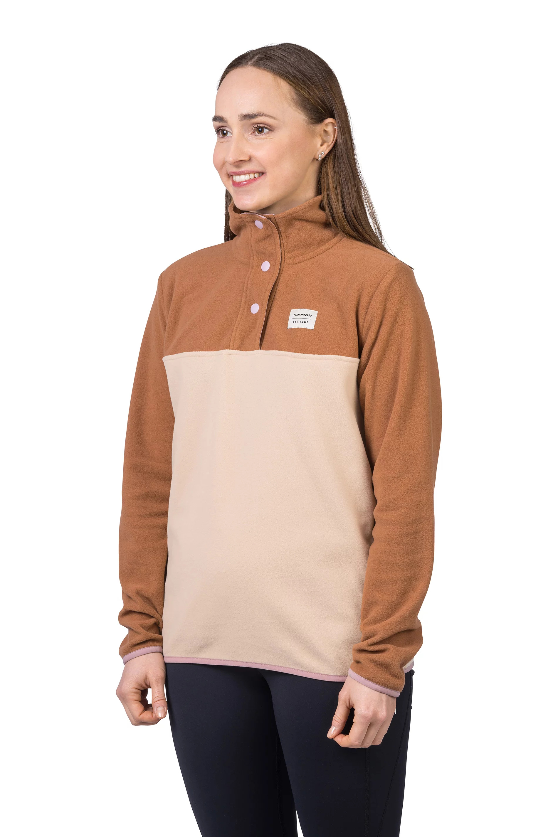 Mikina z jemného, elastického a hřejivého fleece materiálu Polarsoft Micro, který má zároveň nízkou hmotnost a dlouhotrvající životnost. Střih řešený přes hlavu, částečné zapínání mikiny na patentky, které přechází do zvýšeného komfortního stojáčku. Anatomicky tvarované rukávy a spodní okraj jsou lemované gumou. Retro design a barevné členění čerpá z původních kořenů značky Hannah.