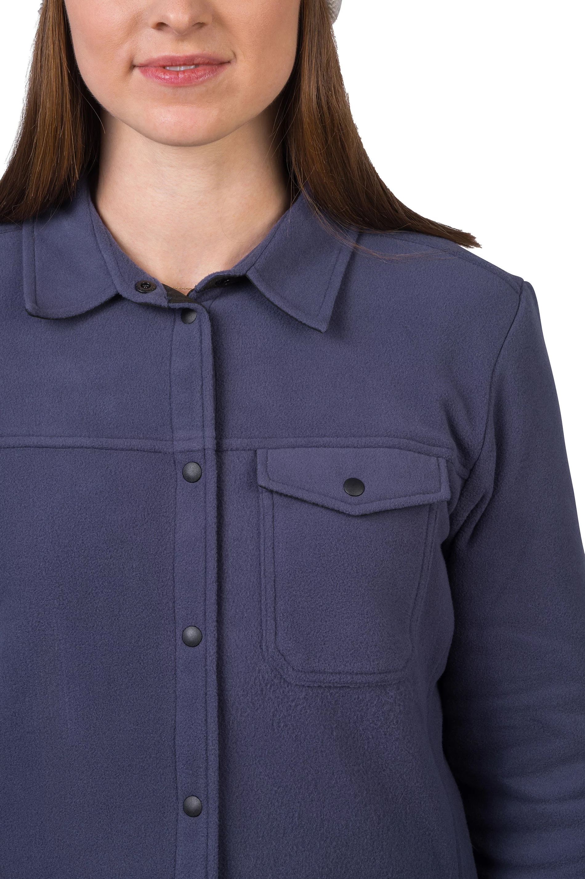Stylová košile je vyrobena z jemného a hřejivého fleece materiálu Polarsoft Micro. Komfortní celorozepínací košile se zapínáním na druky má jednu kapsičku s patkou na srdci a decentní label na dolní části. Rukávy jsou zakončené manžetou na druk. Netradiční spojení fleece materiálu a košile je trendy a zároveň praktické pro každodenní nošení. V chladnějších dnech funguje jako druhá vrstva, v teplejších dnech se nosí ležérně rozepnutá přes tílko.