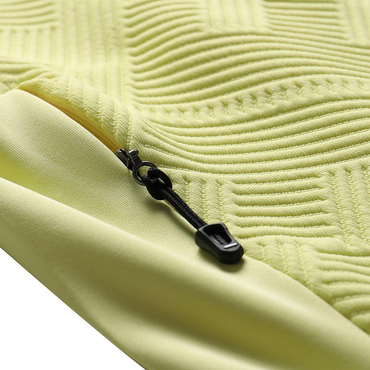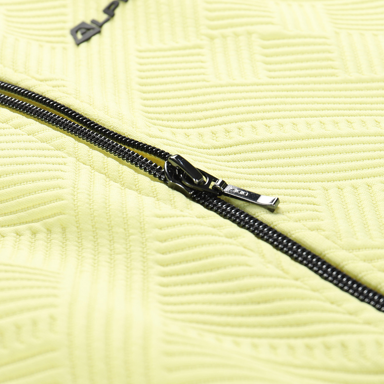 Sportovní mikina je vyrobena z kvalitního hřejivého, strukturovaného materiálu, který výborně izoluje teplo a chrání před chladem i větrem. Pružné a hřejivé kontrastní panely zajišťují dokonalé přizpůsobení postavě, neomezují pohyb a dodávají mikině elegantní sportovní vzhled. Polopřiléhavý střih zvýrazní ženskou siluetu, zatímco dlouhý kontrastní zip s praktickou krytkou u brady umožní snadné oblékání a pohodlí při nošení. Dvě přední kapsy na zip poskytnou dostatek prostoru pro drobnosti, které potřebujete mít po ruce, a zároveň slouží jako stylový detail. Mikinu zdobí decentní potisk na předním dílu, který doplňuje její moderní a sportovně-elegantní charakter.