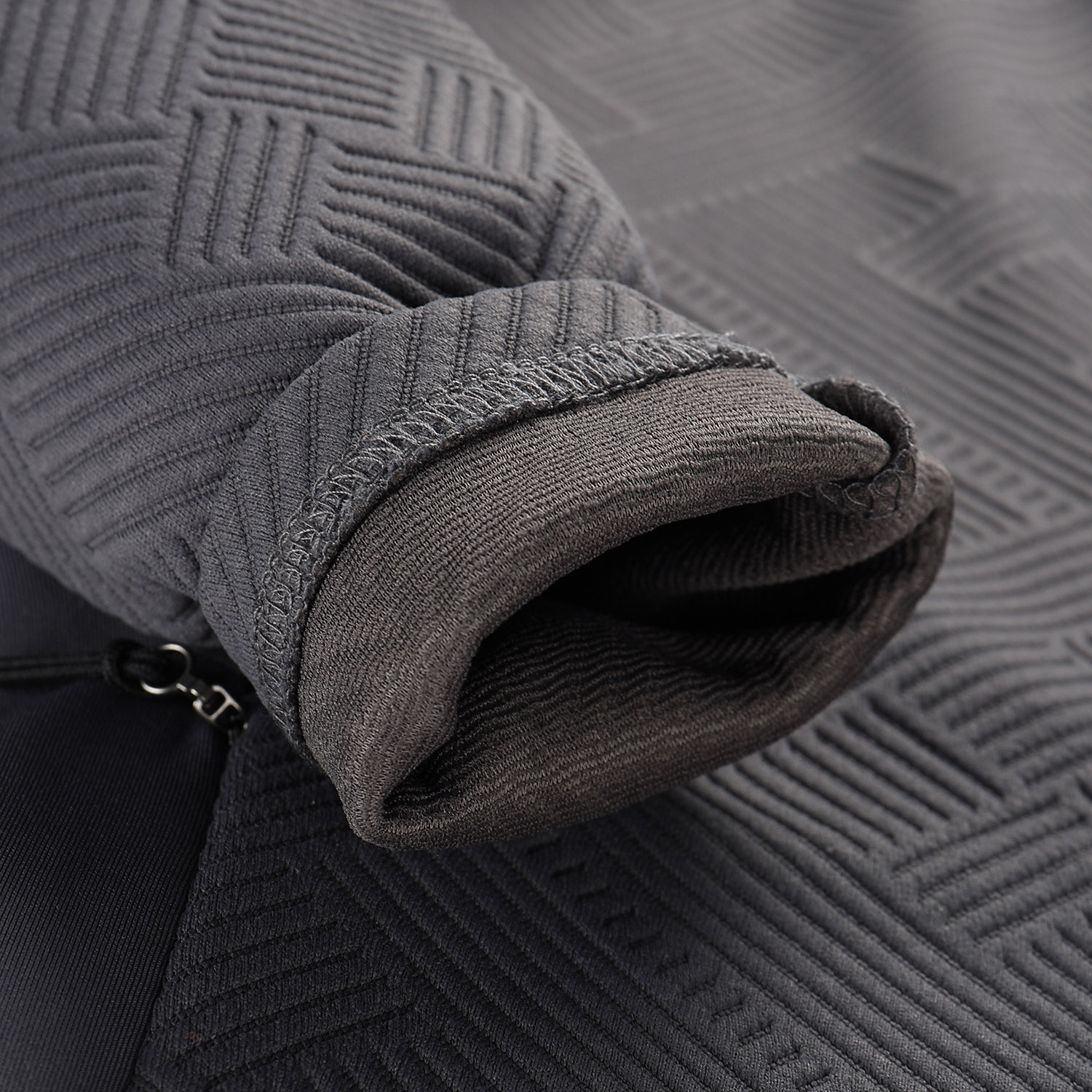 Sportovní mikina je vyrobena z kvalitního hřejivého, strukturovaného materiálu, který výborně izoluje teplo a chrání před chladem i větrem. Pružné a hřejivé kontrastní panely zajišťují dokonalé přizpůsobení postavě, neomezují pohyb a dodávají mikině elegantní sportovní vzhled.