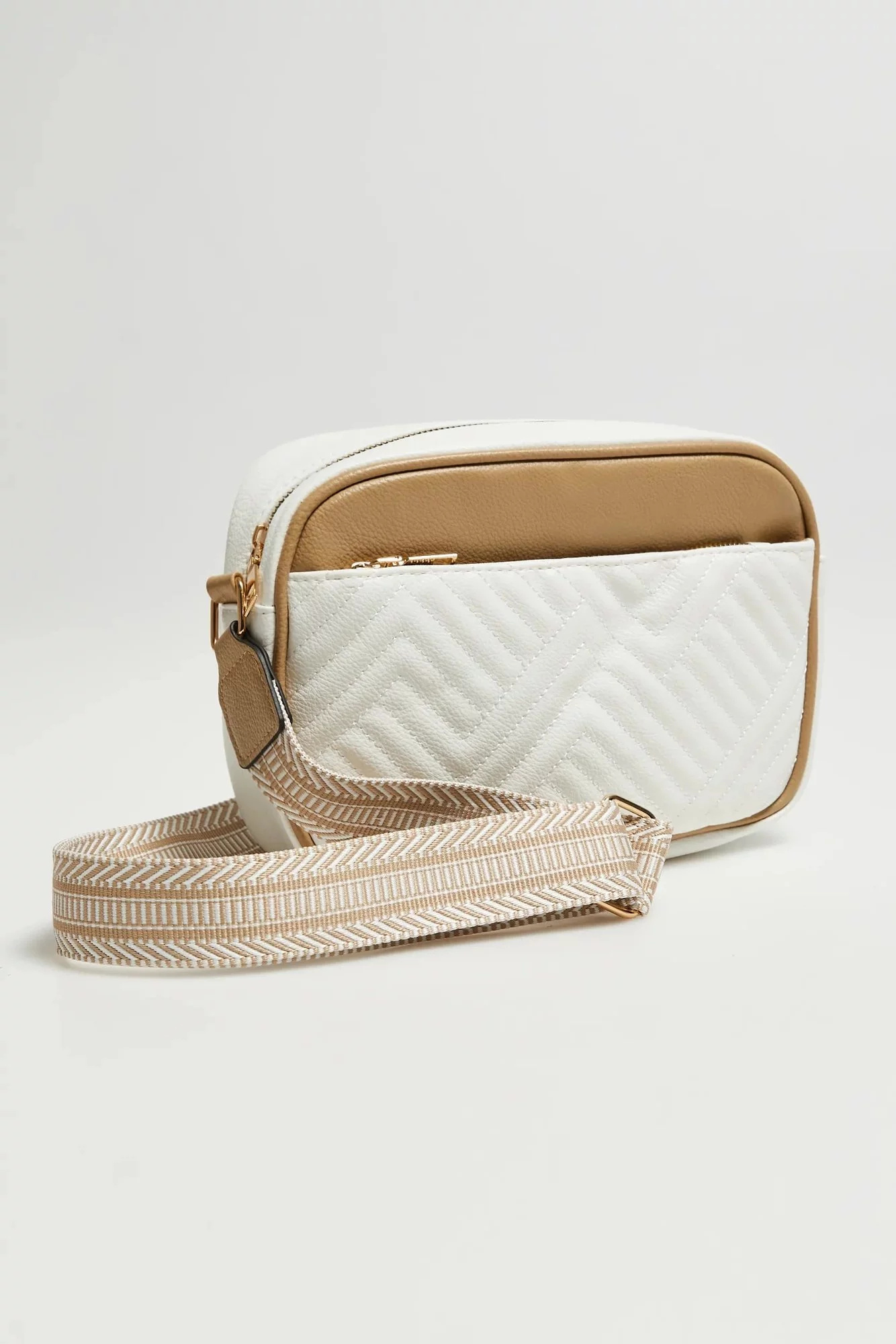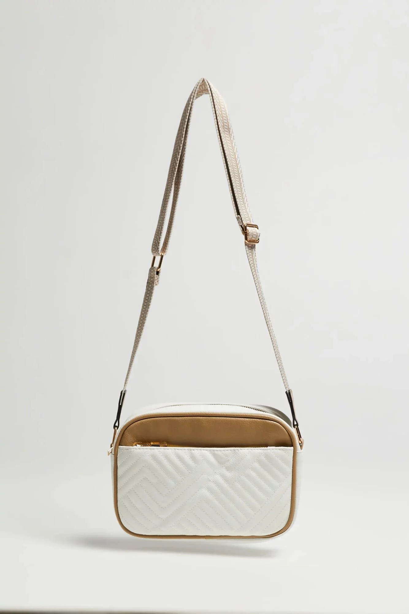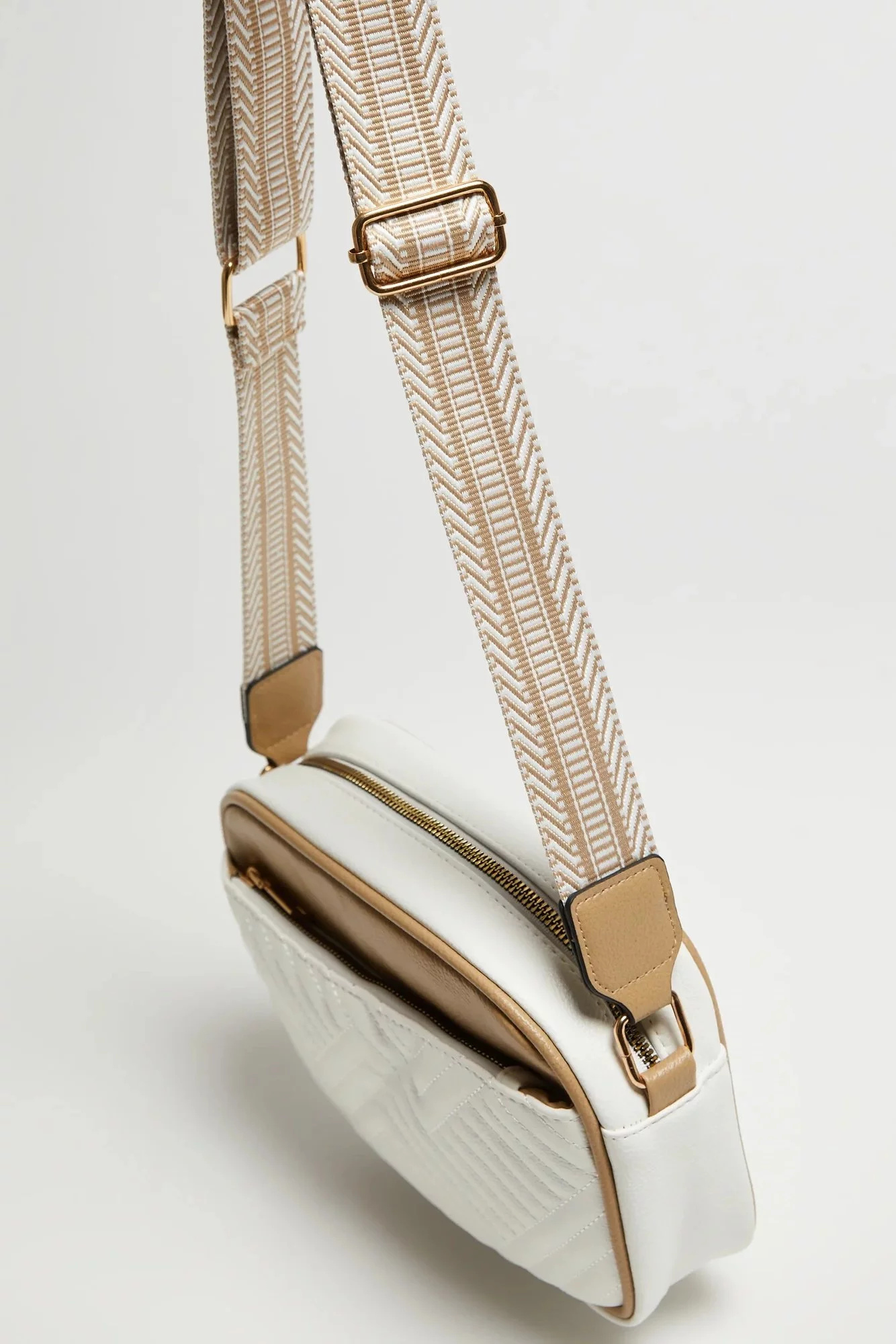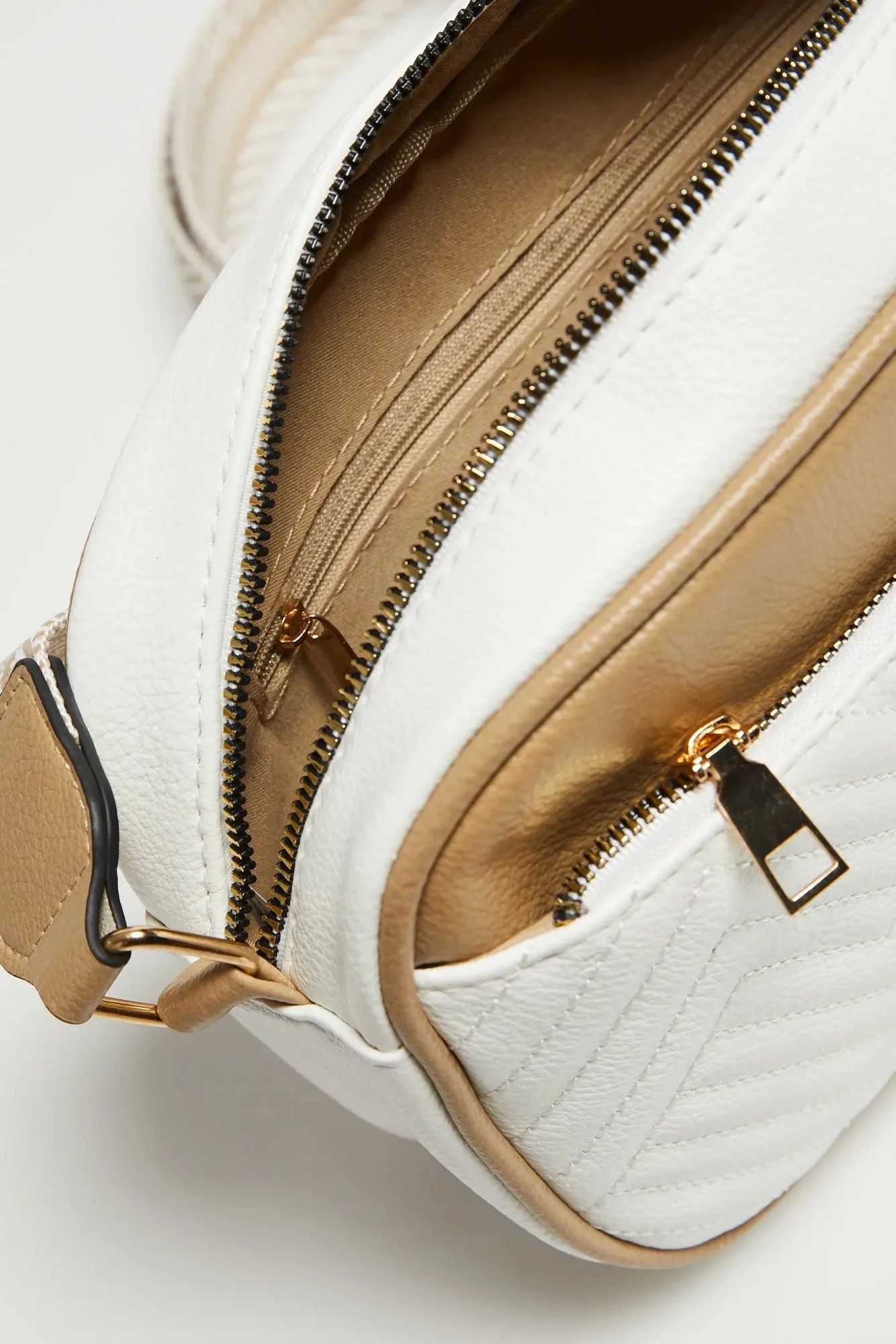 100% POLYURETAN, 100% POLYESTER Elegantní béžová taška je nezbytným doplňkem vašeho šatníku. Vyrobeno z hladkého polyuretanu, má praktickou kapsu na zip a kapsu na telefon, takže všechny potřebné věci můžete mít vždy po ruce. Nastavitelný popruh se zlatými detaily dodává eleganci a umožňuje přizpůsobit tašku vašim preferencím. Tato stylová béžová taška je ideální pro mnoho příležitostí - jak do práce, na obchodní jednání, tak na každodenní výlety.