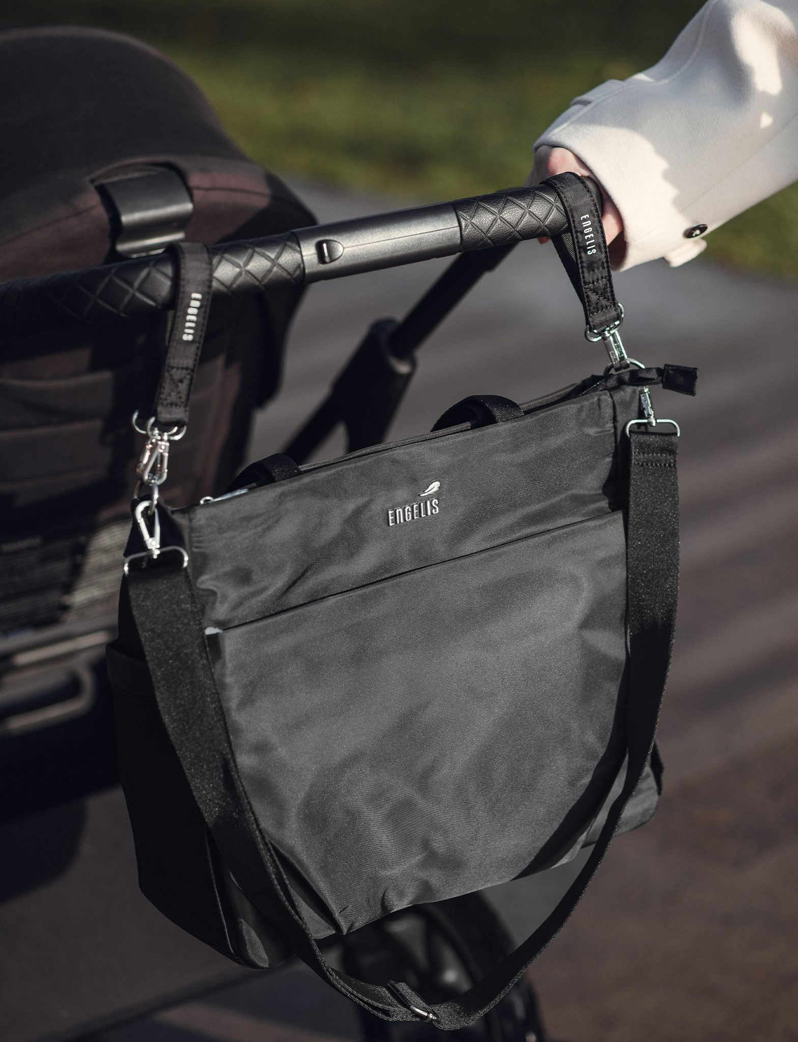 Taška navržená pro každodenní přesuny s kočárkem i bez něj. Díky více popruhům ji můžeš nosit klasicky v ruce, přes rameno nebo ji pomocí speciálních úchytů připnout přímo na madlo kočárku. Boční kapsy pojmou lahvičku nebo drobnosti, které chceš mít hned po ruce, a hlavní prostor se zipem udrží všechno bezpečně uvnitř. Elegantní, praktická a připravená na Tvoje tempo.
