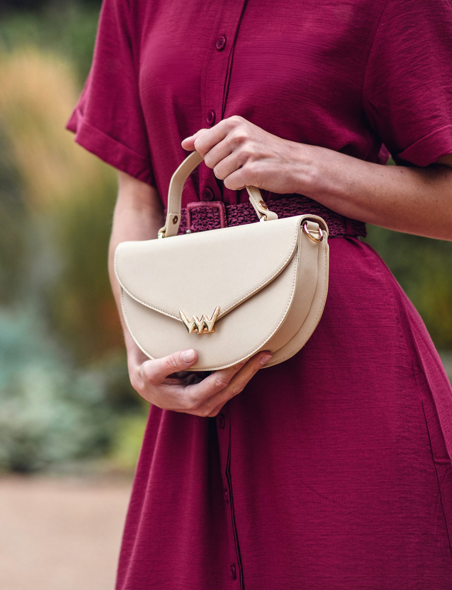Kabelka do ruky ve tvaru naší ledvinky Tricia, ale s malým twistem – novou kovovou sponou, která si říká o pozornost. Elegantní, pevná a přesně tak akorát, když chceš být za dámu, ale pořád s lehkostí.