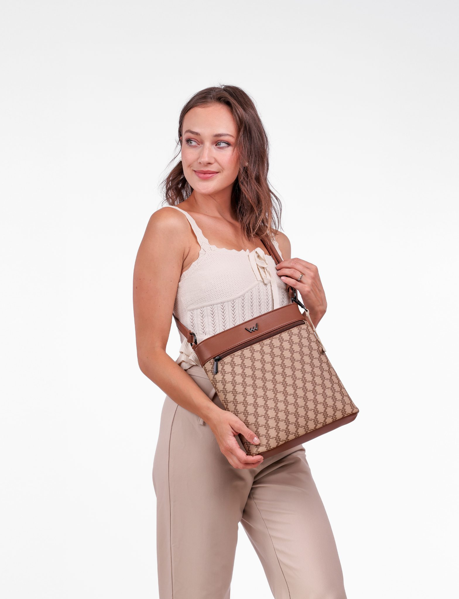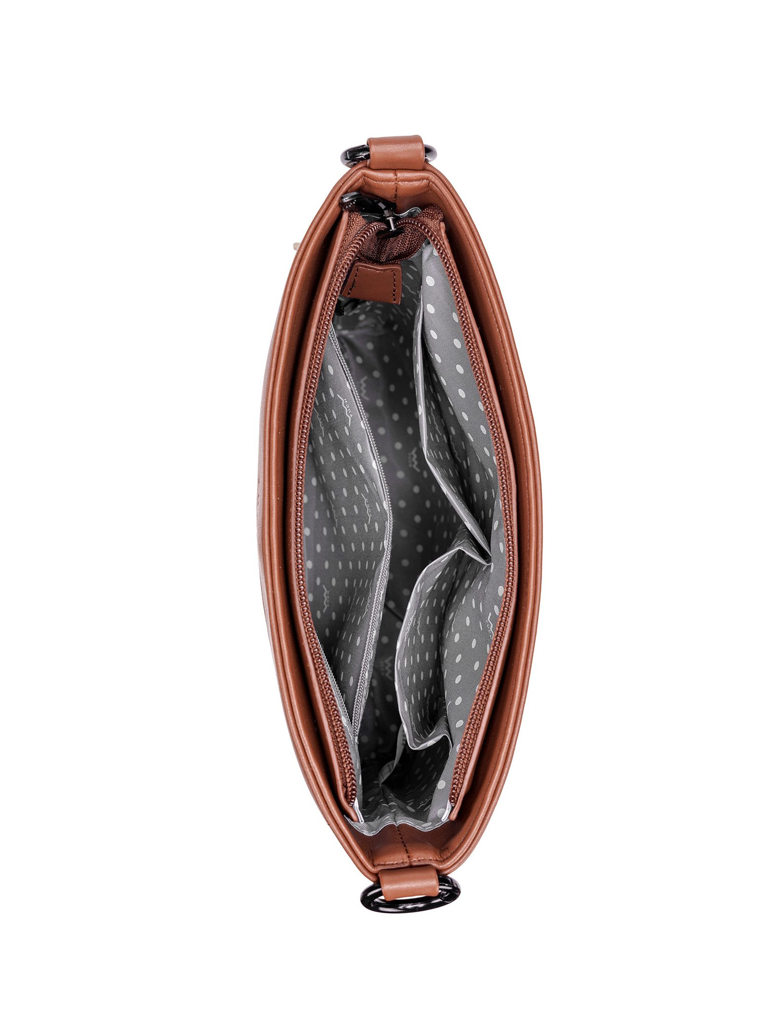 Žádná crossbody pro Tebe není dost velká? Tak Carlene bude. Má to nejlepší z obou módních světů. Hodíš ji přes rameno a žádné neustálé padání není na pořadu dne. Plus je vážně prostorná, takže se do ní vejde i malý nákup. A trojité véčko jako přívěsek jí prostě sekne.