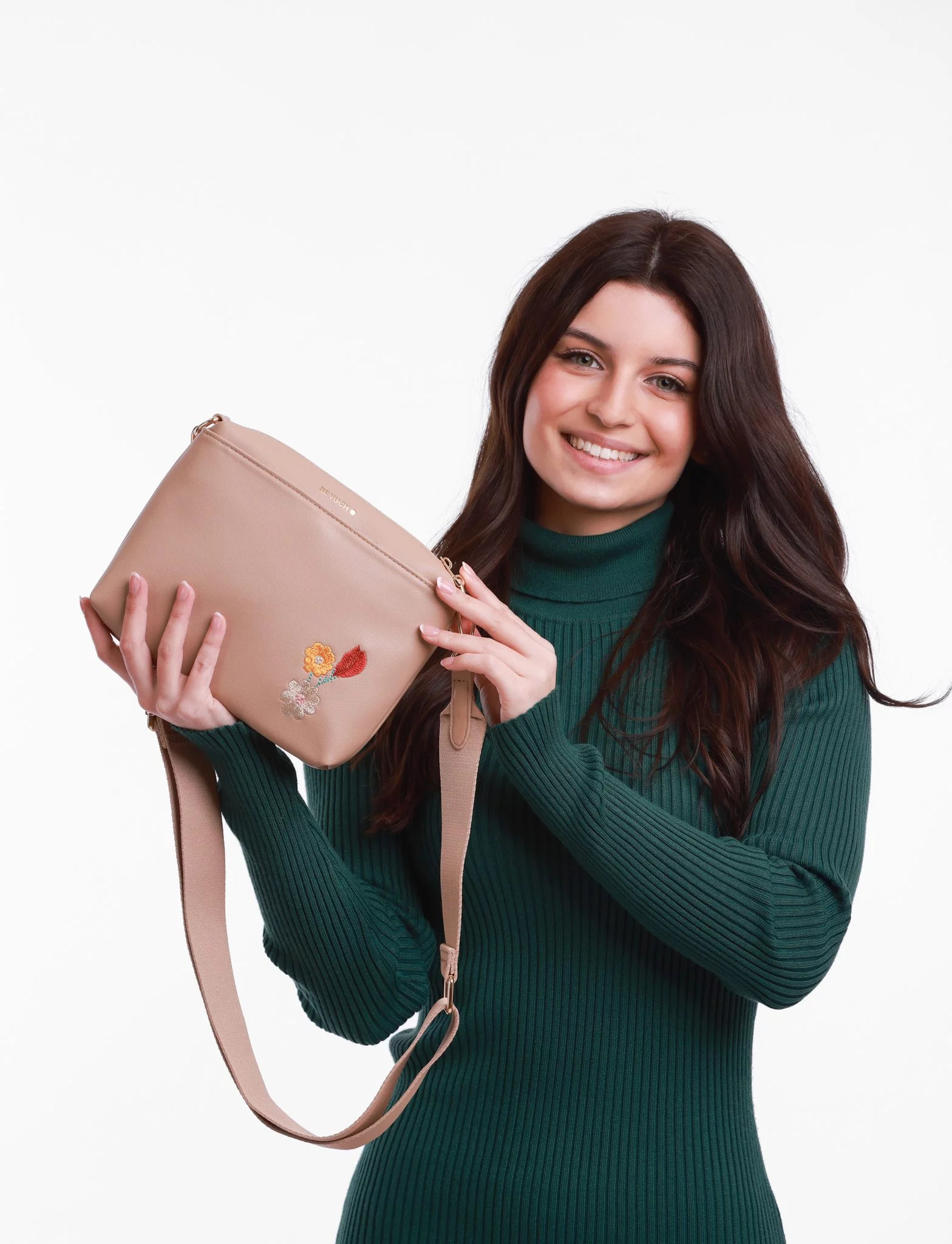 Coalie Flowers je romantická verze klasické kabelky Coalie, která okouzlí detailní květinovou výšivkou. Kombinuje jednoduchý, elegantní tvar s jemným uměleckým zpracováním, které dodává kabelce jedinečný charakter. Uvnitř najdeš praktické uspořádání, zatímco zadní kapsa na magnet ti umožní rychlý přístup k drobnostem. Ideální doplněk pro ty, kdo chtějí spojit nadčasovost s nádechem originality.