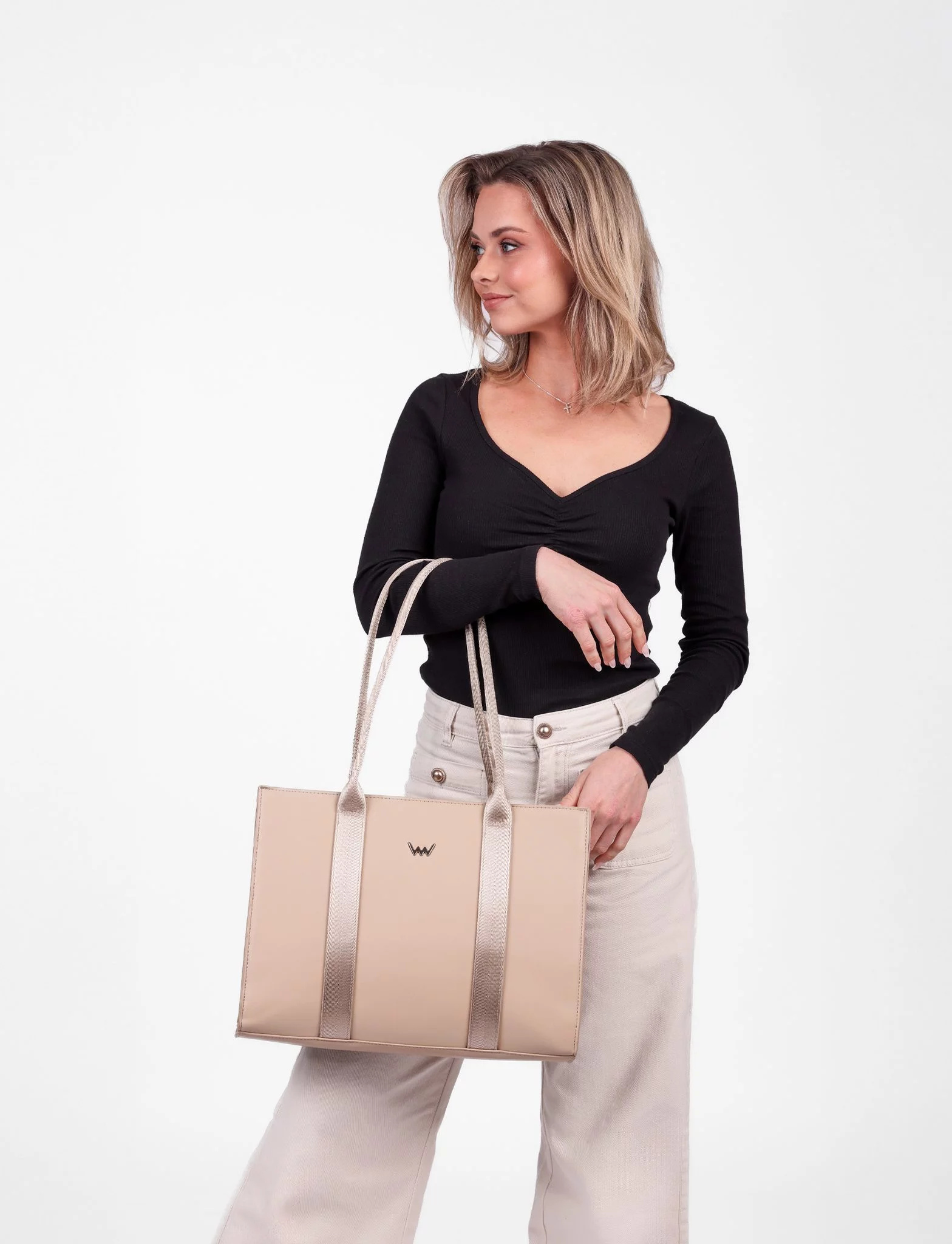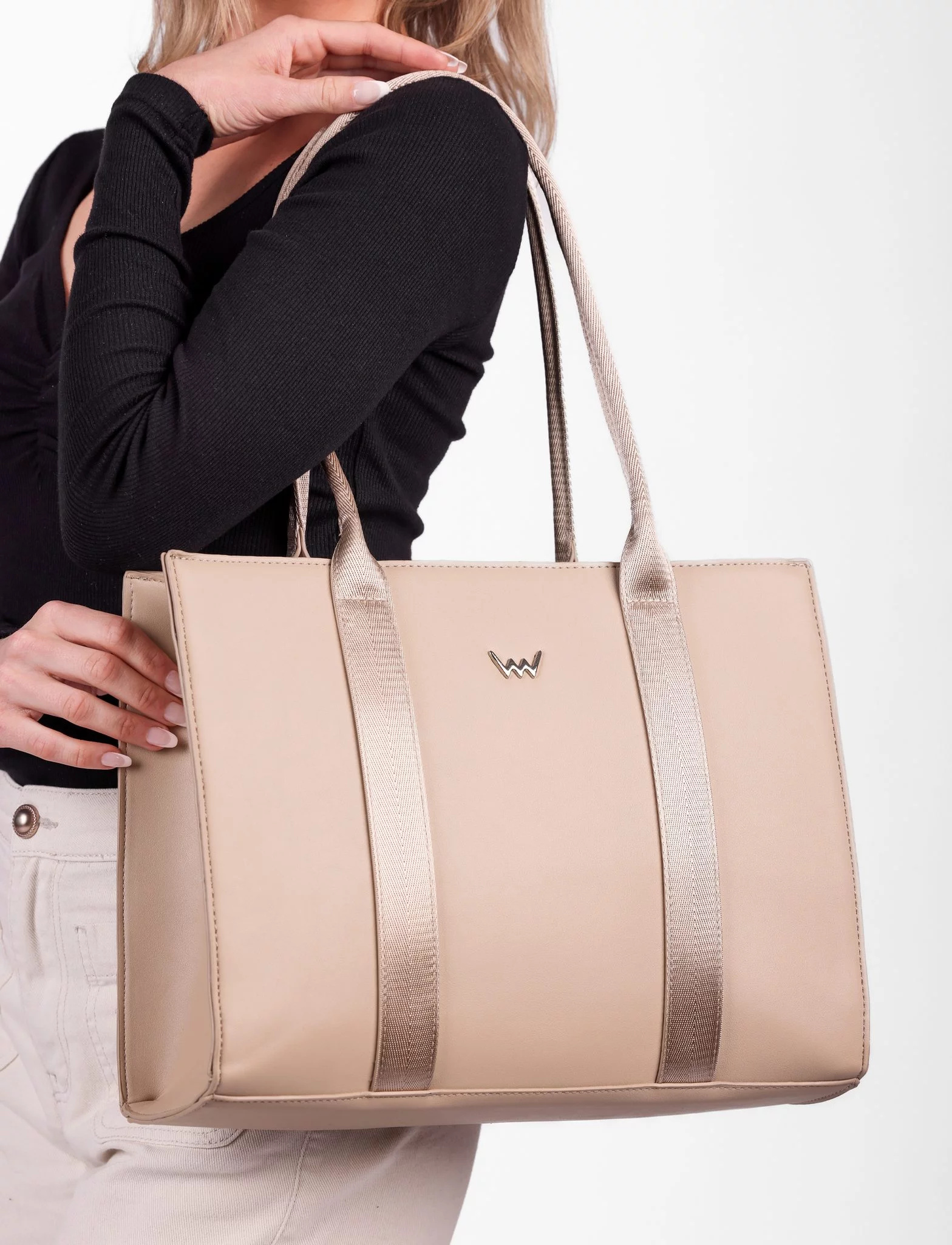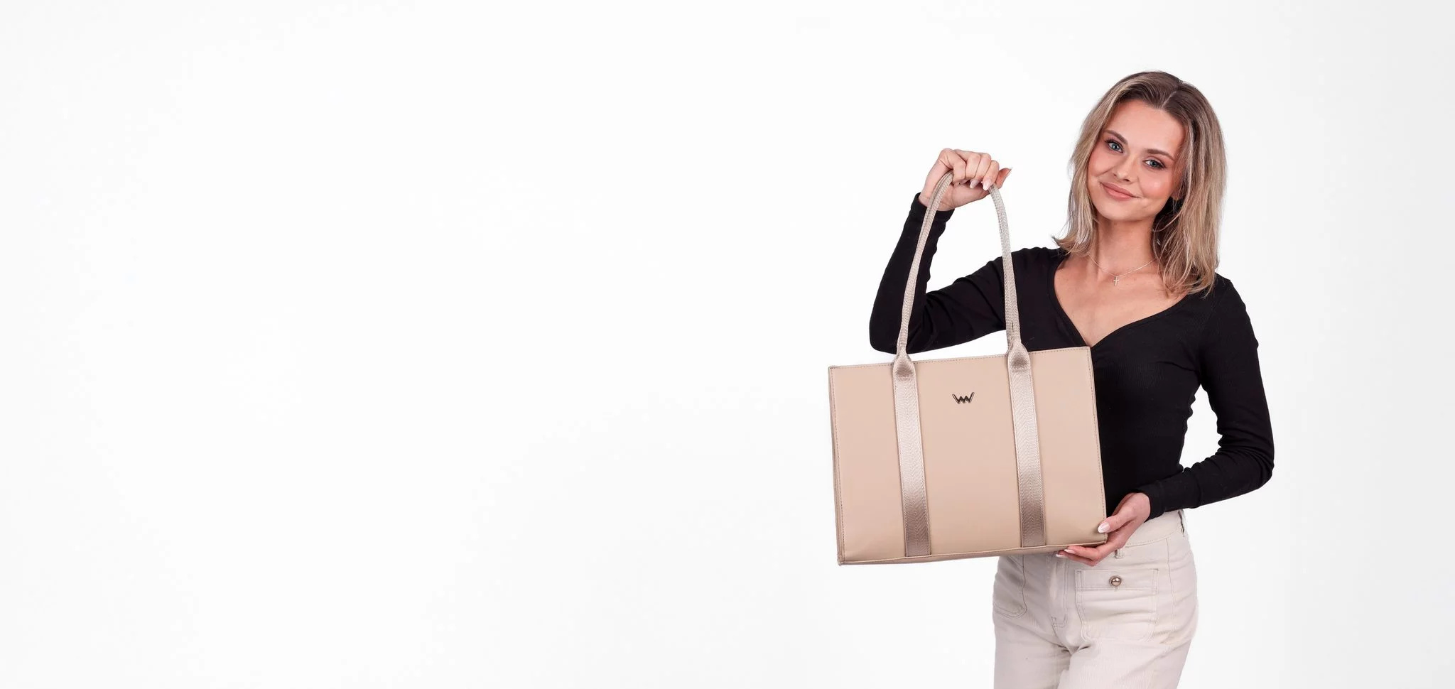 Velká kabelka, co zvládne i Tvůj náročný den. Materiál jako u kabelky Wennie zajišťuje odolnost, ribbonové popruhy zase přidávají stylový detail. Vejde se do ní A4 i spousta dalších nezbytností, a díky vnitřním kapsám budeš mít ve všem přehled. Ideální parťačka do práce, školy i na cesty mezi nimi.