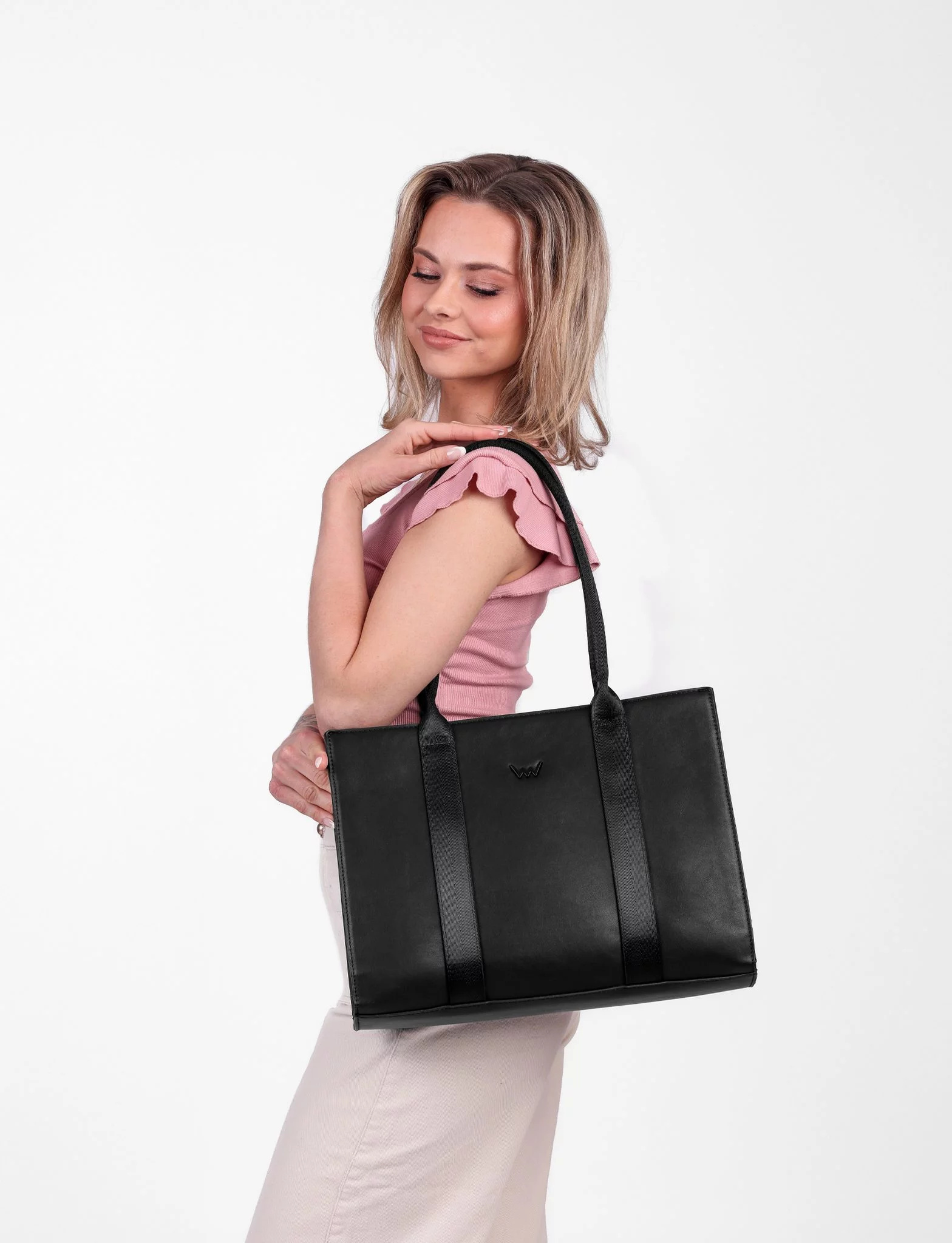 Velká kabelka, co zvládne i Tvůj náročný den. Materiál jako u kabelky Wennie zajišťuje odolnost, ribbonové popruhy zase přidávají stylový detail. Vejde se do ní A4 i spousta dalších nezbytností, a díky vnitřním kapsám budeš mít ve všem přehled. Ideální parťačka do práce, školy i na cesty mezi nimi.