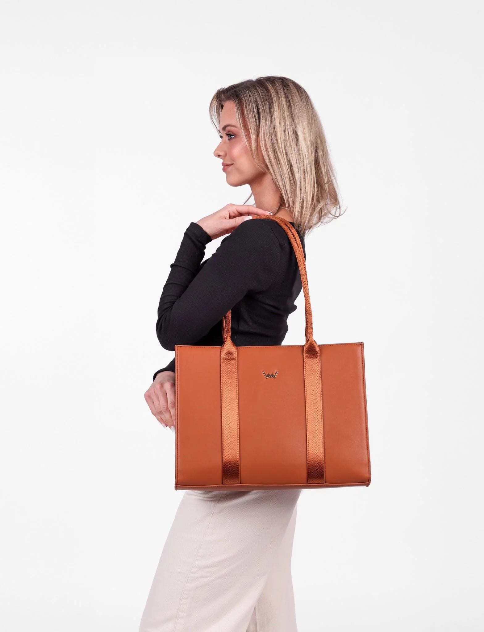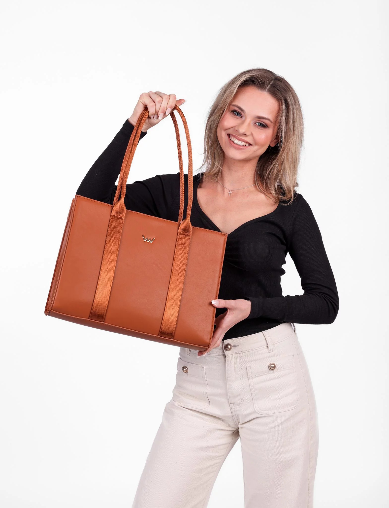 Velká kabelka, co zvládne i Tvůj náročný den. Materiál jako u kabelky Wennie zajišťuje odolnost, ribbonové popruhy zase přidávají stylový detail. Vejde se do ní A4 i spousta dalších nezbytností, a díky vnitřním kapsám budeš mít ve všem přehled. Ideální parťačka do práce, školy i na cesty mezi nimi.