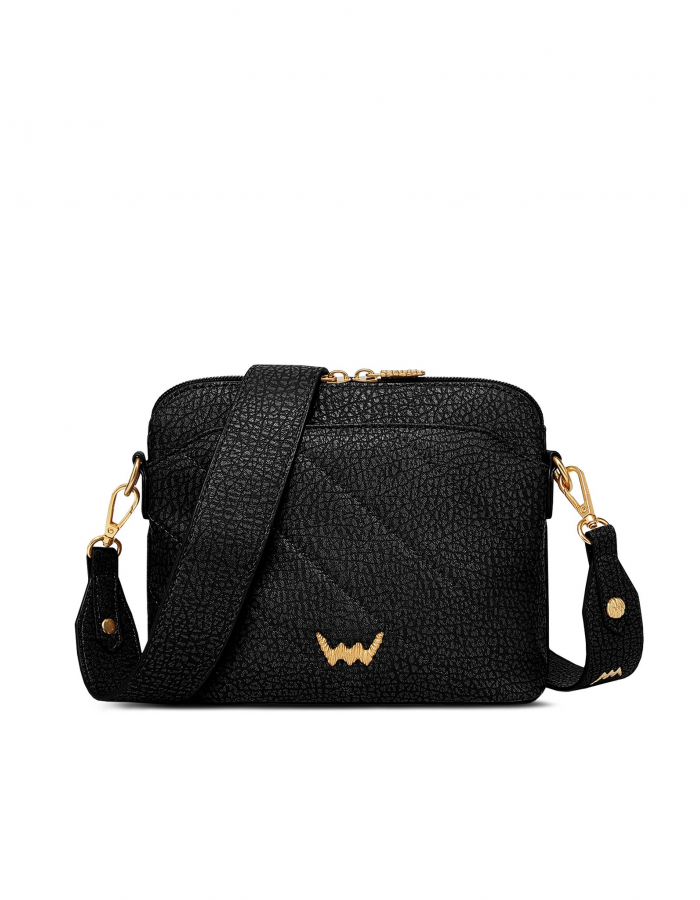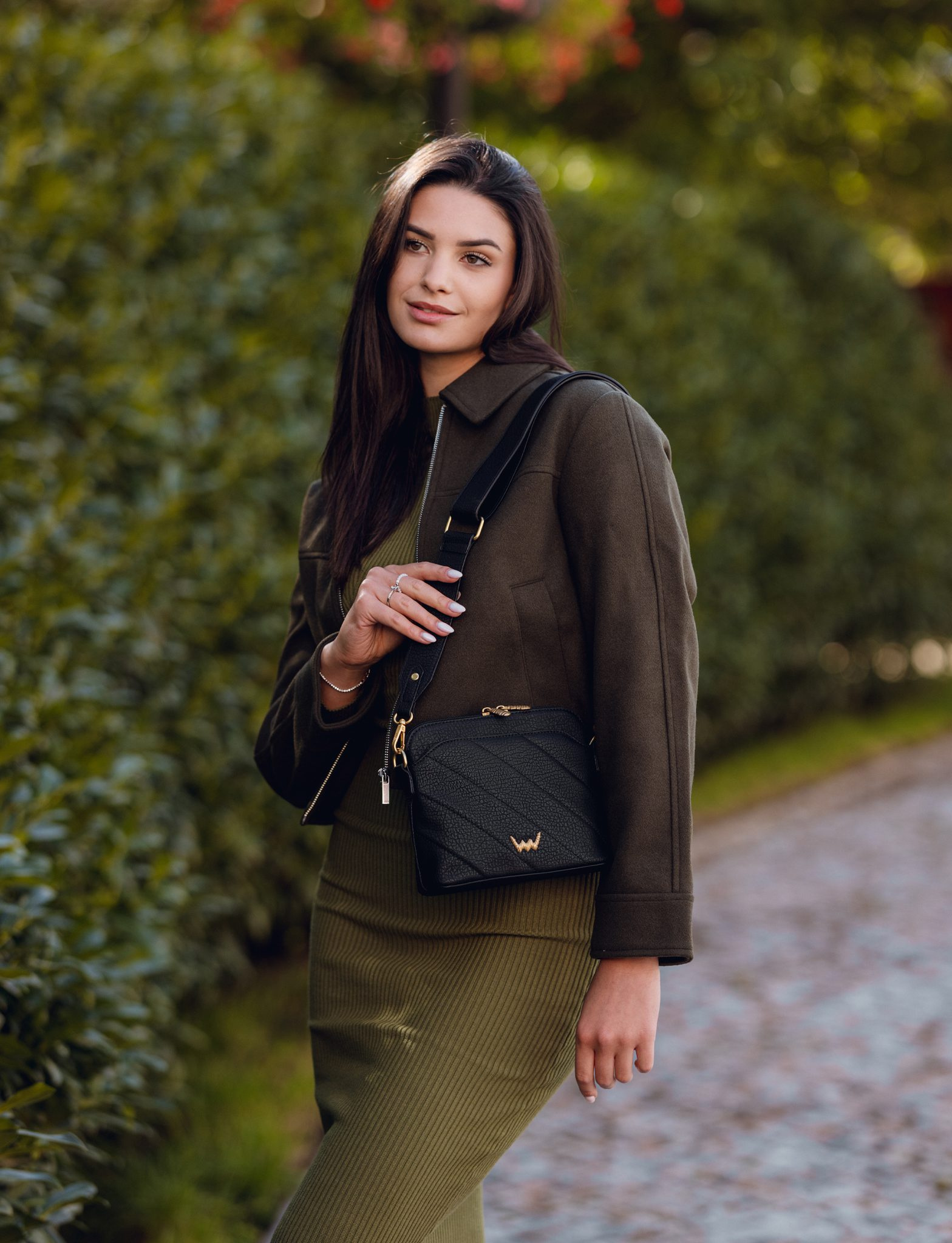 Mini kabelka, která se sice tváří nenápadně, ale ví přesně, jak zazářit. Diagonální prošívání jí dává šťávu, a široký popruh se postará o to, že Tě neunaví ani nákupní maraton. Do kapsy vepředu hodíš klíče, rtěnku nebo třeba sušenku a můžeš vyrazit, kam se Ti zachce.