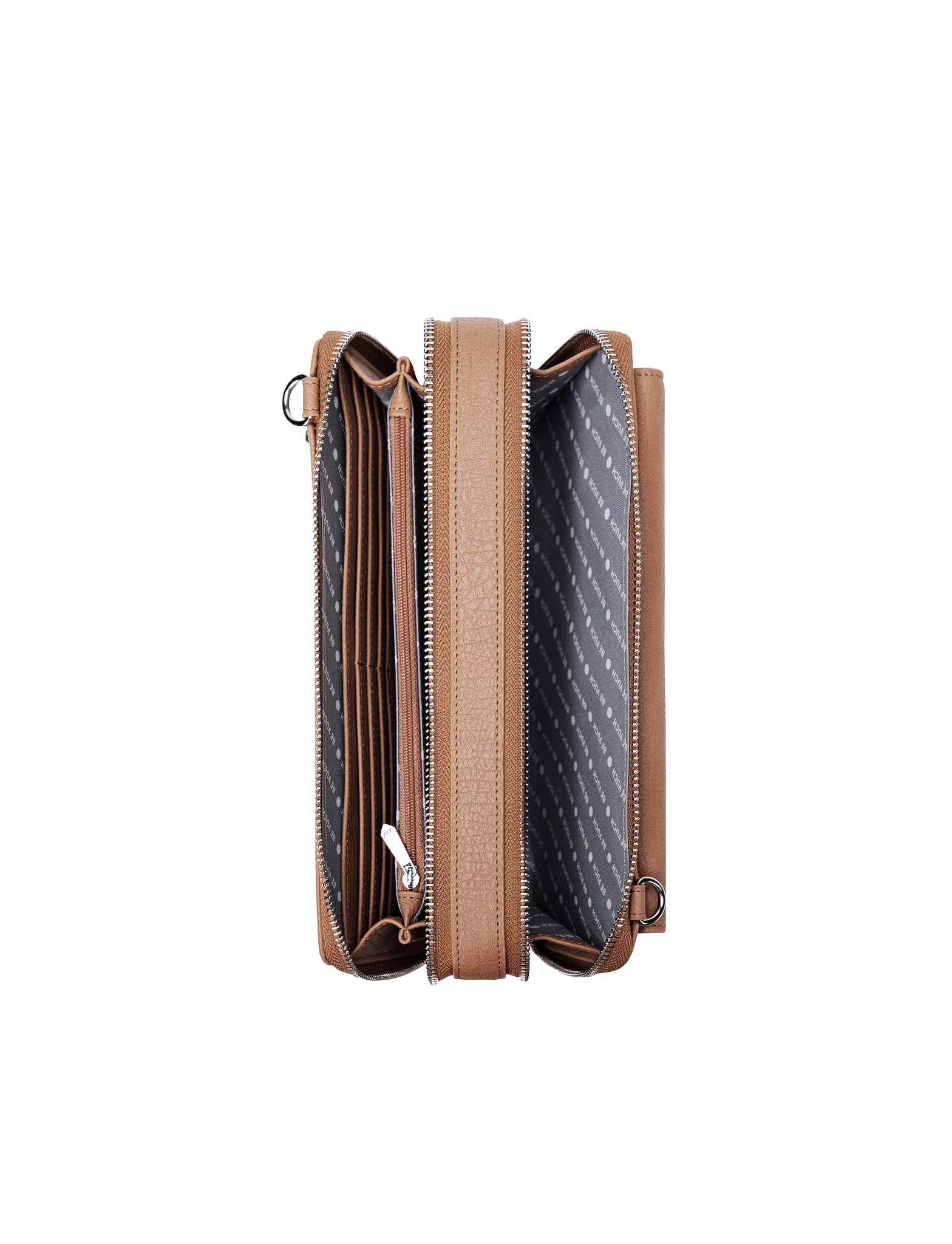 Malá, ale šikovná – tahle crossbody kabelka ví, jak si zorganizovat prostor. Vpředu má kapsičku na mobil, uvnitř dvě oddělené přihrádky a místo na karty, takže peněženku klidně nech doma. Široký popruh s logem jí dodává pohodlnost i styl. Materiál jako u kabelky Cara zaručí, že Ti vydrží víc než jen jednu sezónu.