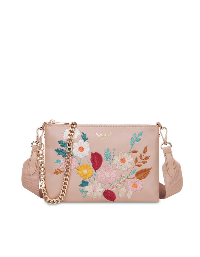 Lylann Flowers je půvabná crossbody kabelka, která spojuje jednoduchý tvar s jemnou květinovou výšivkou. Díky kompaktní velikosti a praktické zadní kapse na magnet je ideálním doplňkem pro každý den. Kovový řetízkový popruh dodává elegantní nádech, zatímco výšivka přidává jemnost a originalitu. Stylová, praktická a s nádechem romantiky.