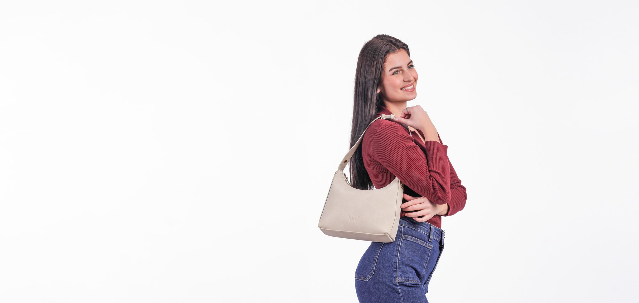 Minimalistický tvar, sametově jemný povrch z imitace semiše a barvy, které snadno sladíš s jakýmkoli outfitem. Velká tak akorát na věci, co Ti zachrání den, a uvnitř přehledně schová všechny denní nezbytnosti. Variabilní řešení popruhu Ti umožní nosit ji přesně tak, jak se Ti hodí – od ranní kávy až po večerní kino. Popruh do ruky snadno pomocí pinů upravíš na popruh na rameno a navíc je součástí kabelky i samostatný crossbody popruh pro pohodlné nošení s volnýma rukama.