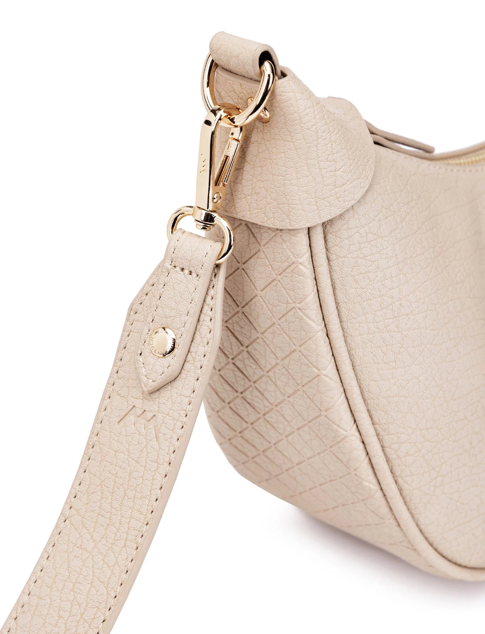 Nessa je stylová zaoblená kabelka, která se díky své měkké konstrukci přirozeně přizpůsobí tvému nošení. Úzký popruh zajišťuje pohodlí, zatímco kulaté logo a jemné laserované detaily dodávají elegantní nádech. Lehká, praktická a perfektní na každý den.