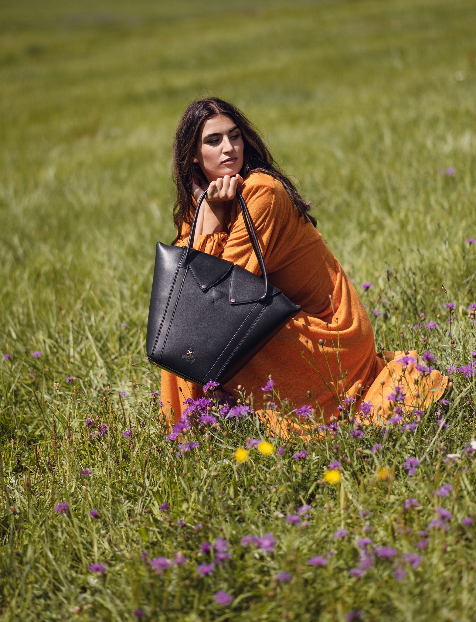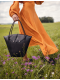 Tato větší verze kabelky z kolekce Laboratory - Mezi světy je navržena pro každodenní rytmus města. Díky pevnému tvaru a velkému vnitřnímu prostoru se do ní vejde všechno, co potřebuješ – notebook, kosmetika i diář. Zapínání s klopou ve tvaru košilového límce dodává kabelce elegantní a mírně formální výraz, ale zůstává měkce ženská. Jemně vyražený motiv „Vuch × Pavel Berky“ ve tvaru X symbolizuje křižovatku – volbu mezi směry, kterou každá žena dělá po svém.
