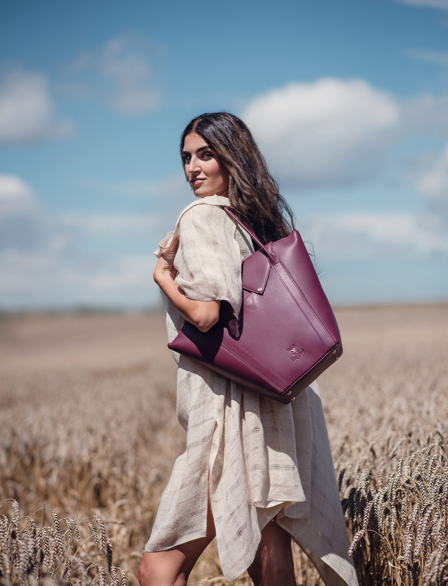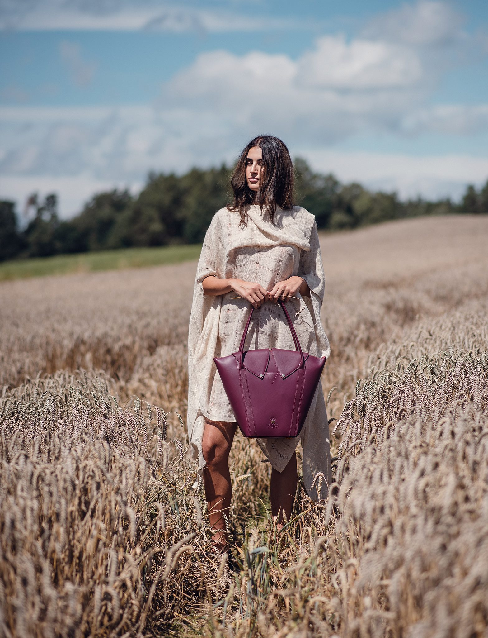 Tato větší verze kabelky z kolekce Laboratory - Mezi světy je navržena pro každodenní rytmus města. Díky pevnému tvaru a velkému vnitřnímu prostoru se do ní vejde všechno, co potřebuješ – notebook, kosmetika i diář. Zapínání s klopou ve tvaru košilového límce dodává kabelce elegantní a mírně formální výraz, ale zůstává měkce ženská. Jemně vyražený motiv „Vuch × Pavel Berky“ ve tvaru X symbolizuje křižovatku – volbu mezi směry, kterou každá žena dělá po svém.