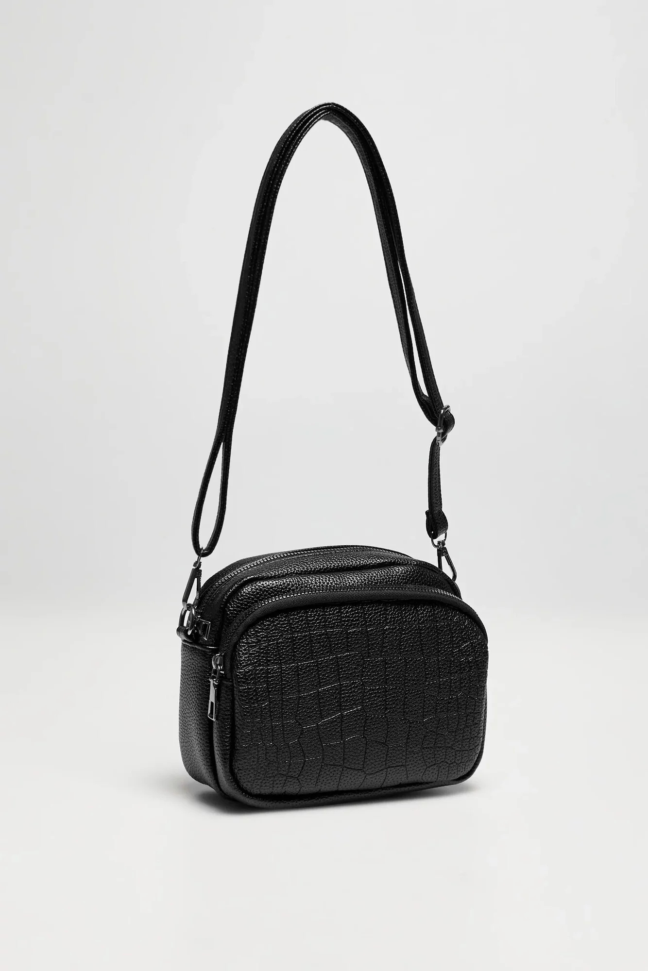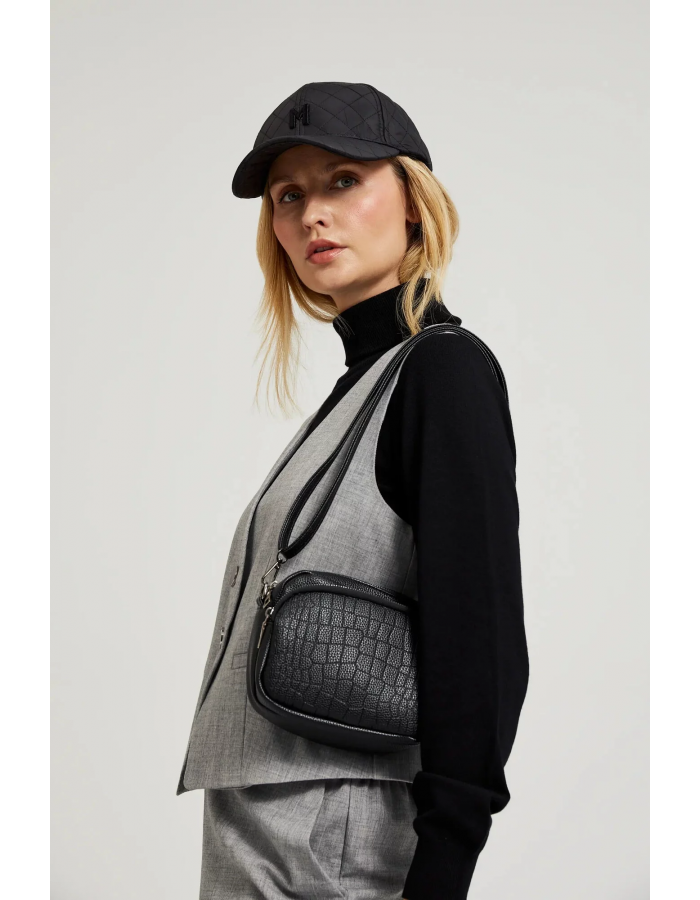 100%POLYURETAN, PODŠÍVKA 100% POLYESTERElegantní dámská taška v černé barvě, zdobená zvířecím vzorem, ideální na každodenní nošení.