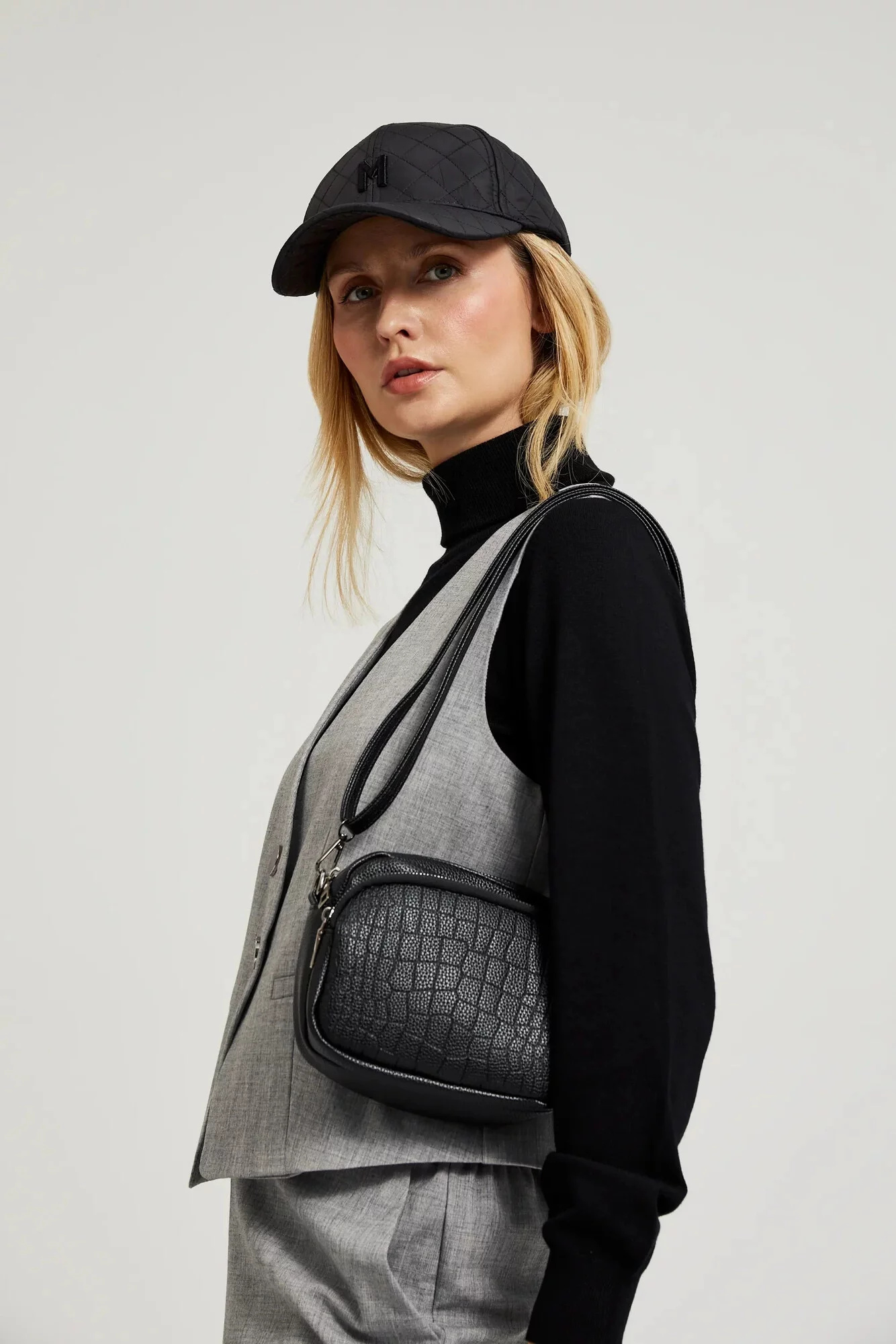 Vyrobena z vysoce kvalitního polyuretanu, má praktické kapsy na zip a na telefon. Zapínání na zip zajišťuje bezpečnost vašich osobních věcí a odnímatelný a nastavitelný popruh umožňuje přizpůsobení tašky vašim potřebám. Stříbrné detaily dodávají eleganci a malá velikost zajišťuje, že je taška pohodlná na nošení. Ideální na večerní výlety, setkání s přáteli nebo do práce. Dokonale se hodí k elegantním šatům, džínům nebo stylovému kabátu. Díky unikátnímu vzoru a pohodlným řešením se tato taška stane neodmyslitelnou součástí tvého šatníku.