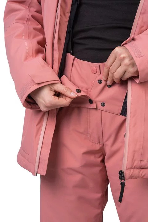 Klasická lyžařská bunda Hannah Merila, která uspokojí i náročnější lyžařky, které sjíždí kopce o sto šest. Centrální zip a zip na hrudní kapse jsou voděodolné. Padnoucí střih a zároveň atraktivní barevné kombinace dávají bundě nadčasový vzhled. Materiál Resstex 10 000 v kombinaci s dutým vláknem Duratherm Classic se postarají o vaše dokonalé pohodlí v jakýchkoli podmínkách. Za zmínku stojí klasické lyžařské atributy jako je sněhový límec v pase, vnitřní kapsa na brýle, odvětrání v podpaží a kapsa na skipas. Uživatelsky příjemná je i regulace v dolním lemu bundy, stejně jako stahování na koncích rukávů pomocí suchých zipů. Hlavní kapsy na zip s patkou, k tomu 1 vnitřní, umožňují perfektní rozmístění důležitých předmětů, které jsou nezbytné pro fungování na sjezdovce. V případě, že počasí bude méně příznivé, můžete využít stahování kapuce v zadní části.