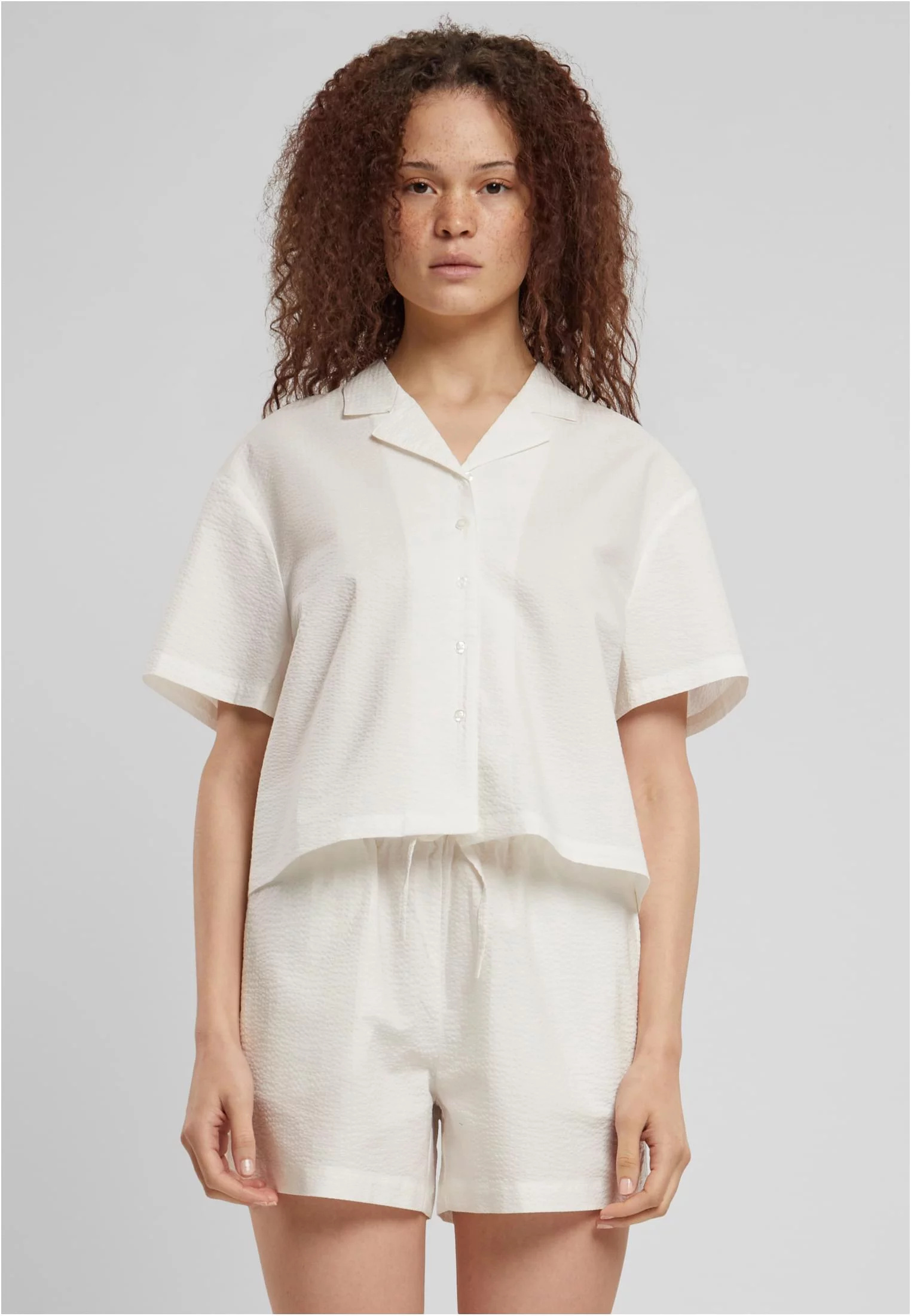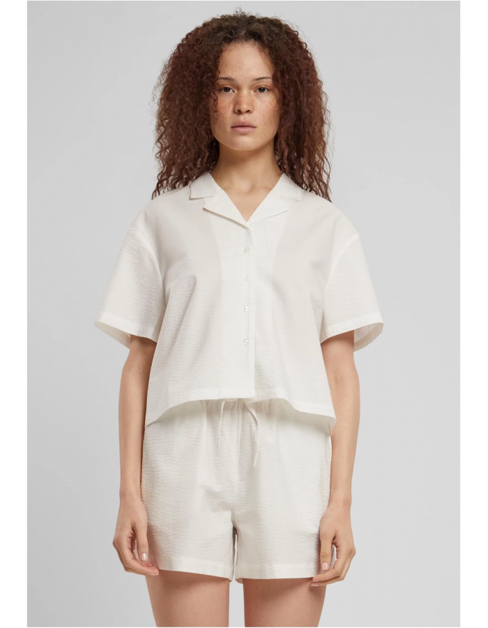 Dámská košile Seersucker od Urban Classics je nezbytností, která bez námahy kombinuje lehkost a sofistikovanost. Díky svému vzdušnému střihu a krátkým rukávům je tato široká košile ideální pro teplejší dny, nabízí pohodlí a přitom zůstává elegantní. Vyrobeno ze 100% bavlny, zaručuje příjemný pocit na pokožce. Límec s klopou a knoflíková léga dodávají monochromatickému designu klasický dotek. Ať už v kanceláři nebo na uvolněné procházce městem, tuto dámskou košili lze kombinovat různými způsoby.
