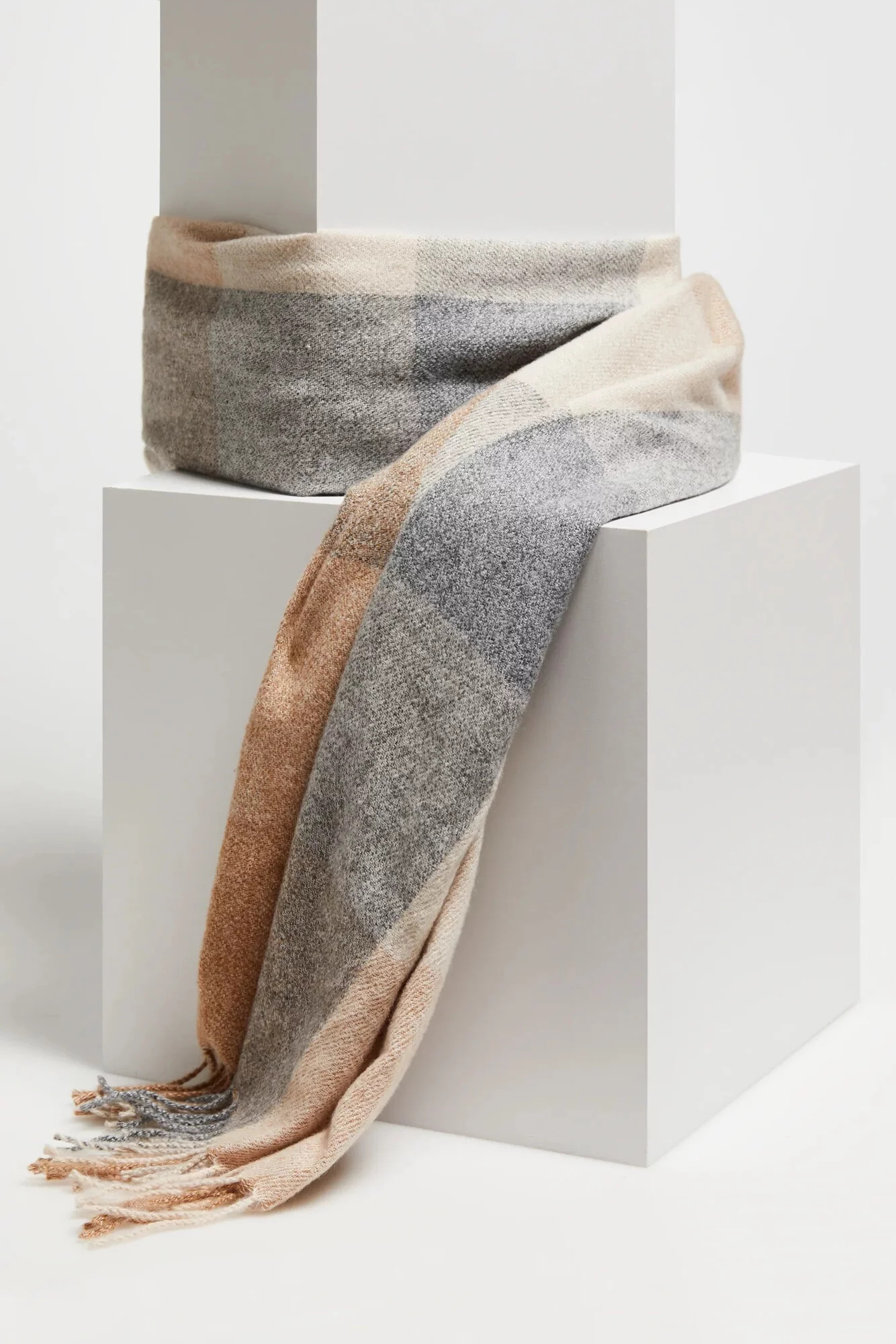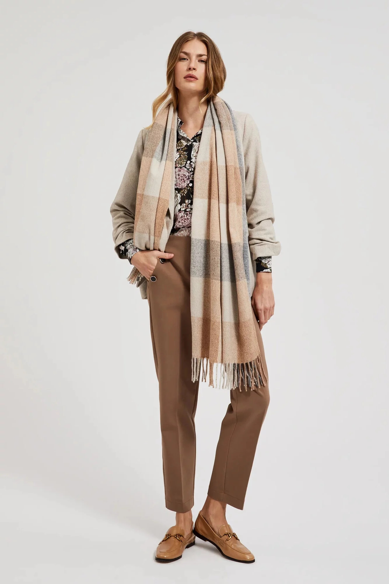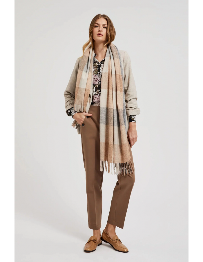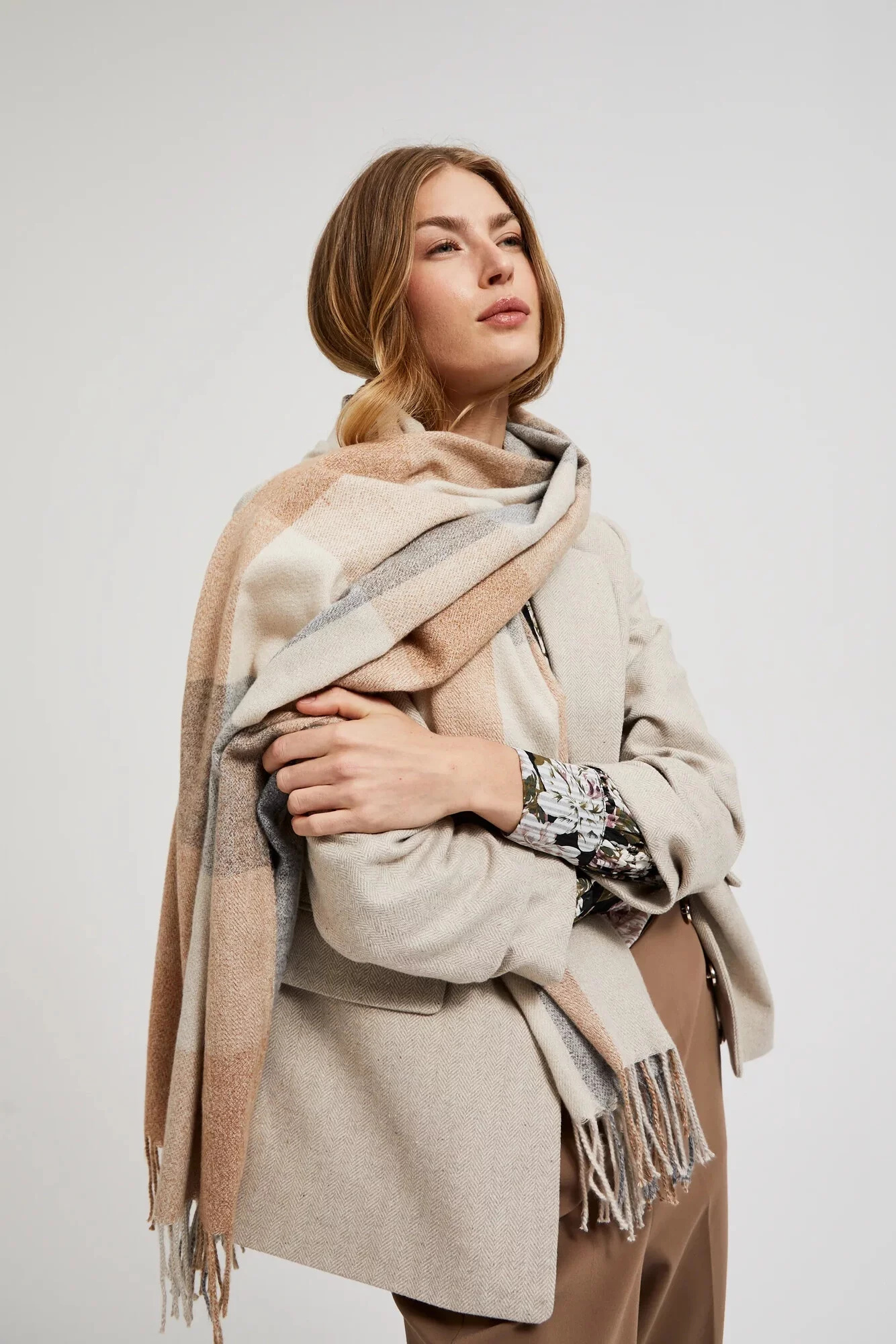 Dámská kostkovaná šála s třásněmi MOODO - béžová