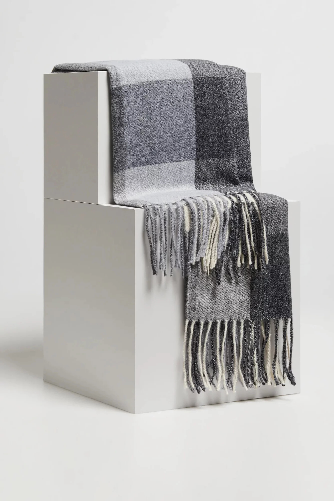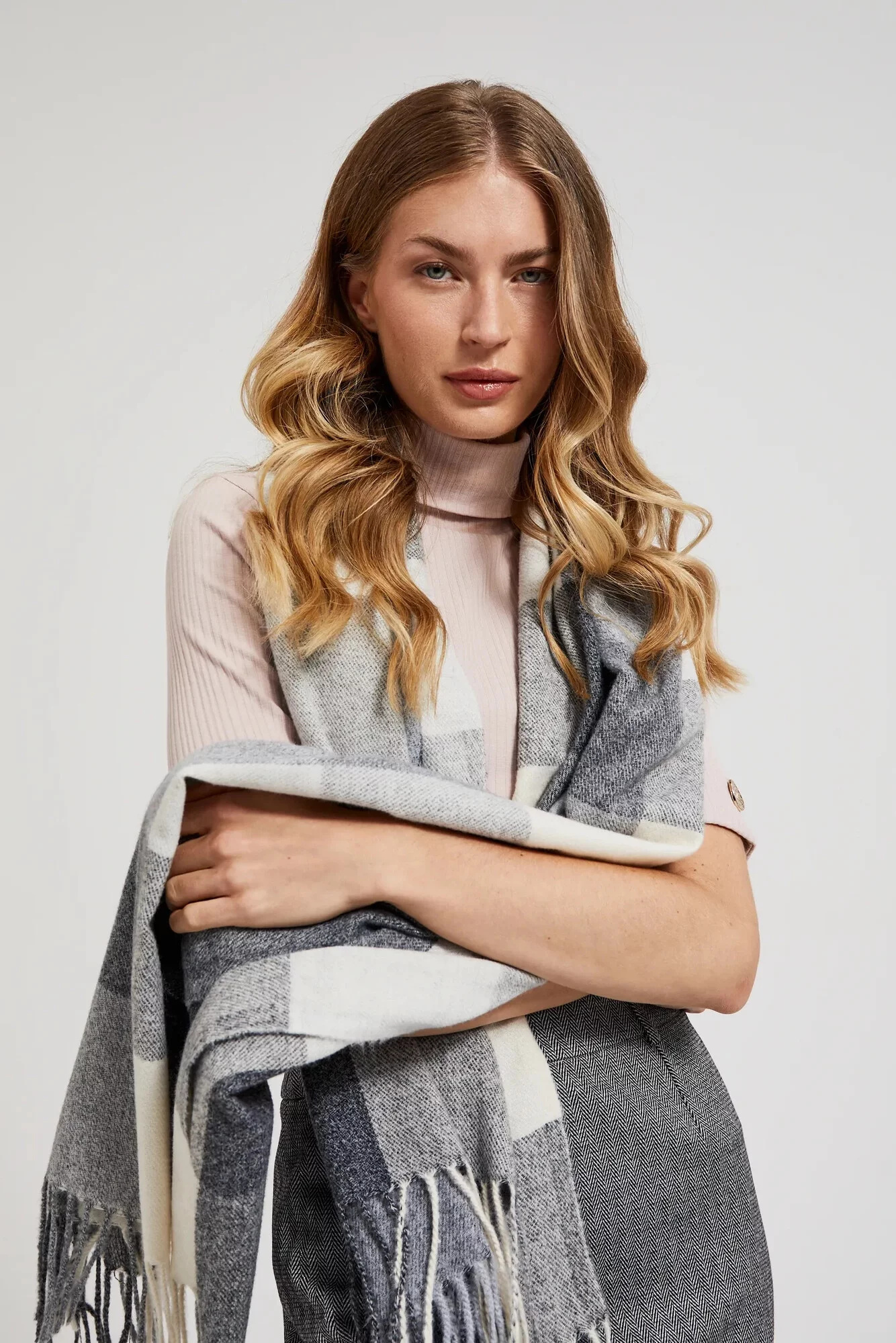 Dámská kostkovaná šála s třásněmi MOODO - šedá