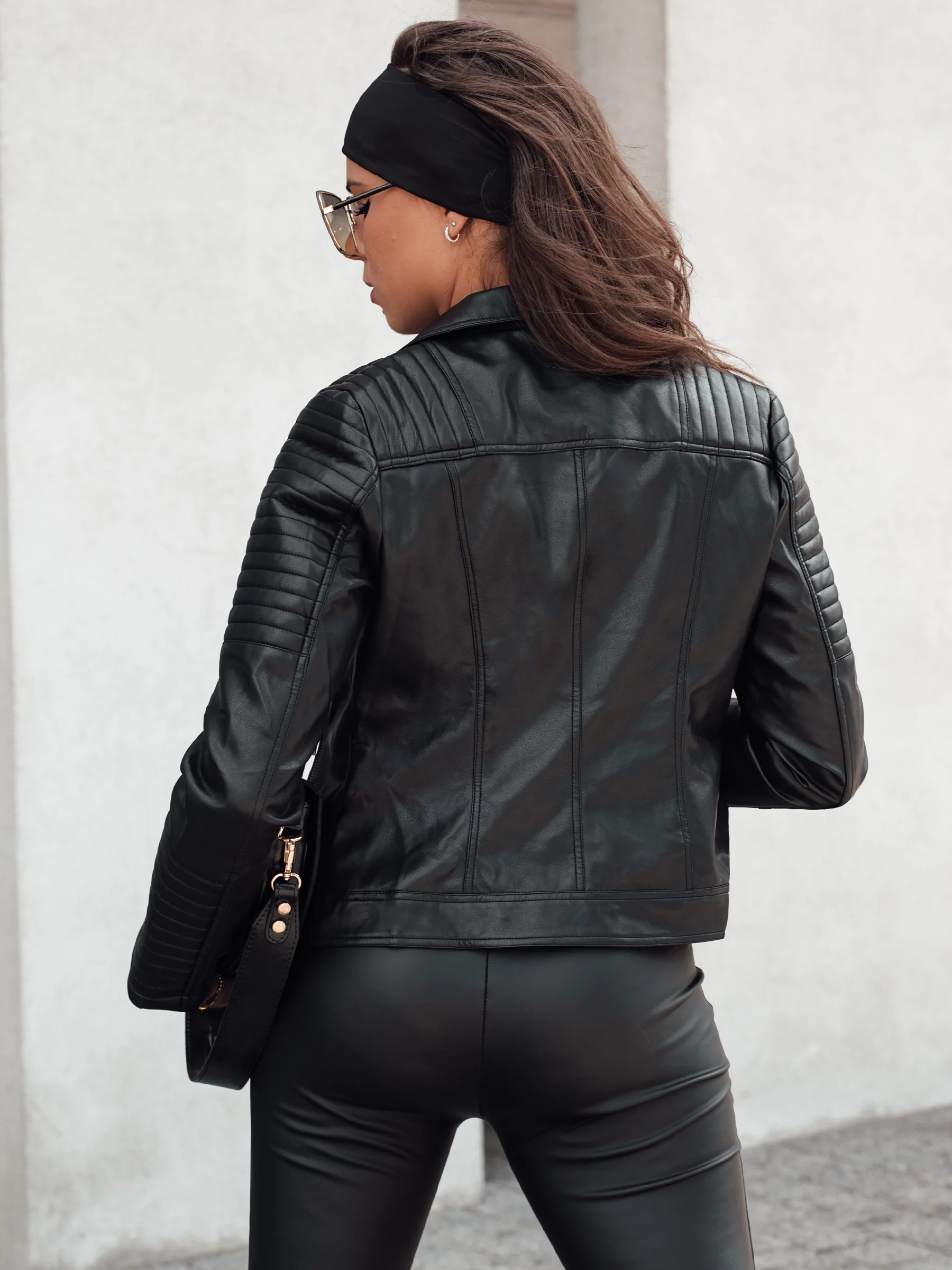 Dámská kožená bunda ramoneska krátká černá Dstreet TY4634 L