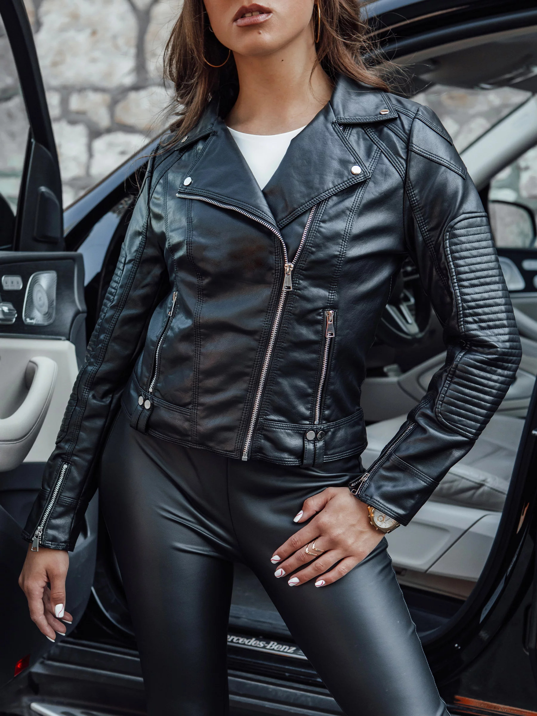 Kožená bunda, která podtrhne Tvůj jedinečný styl. Ideální na každé roční období, poskytující teplo a pohodlí. Vysoce kvalitní materiály zaručují trvanlivost a pohodlí při nošení. Stylové detaily, jako jsou zipy a prošívání na rukávech, jí dodávají jedinečný charakter. Dokonale se hodí k mnoha stylizacím a dodává jim jedinečné kouzlo. Přidej ji do své sbírky a buď vždy na vrcholu.