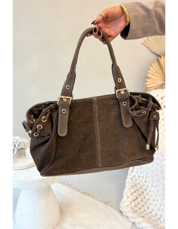 Dámská kabelka Ovelia z kombinace přírodní kůže a semiše v tmavě béžové barvě spojuje elegantní design s praktickým členěním. Kvalitní materiály a precizní zpracování zajišťují pohodlné nošení a dlouhou životnost. Ideální volba pro každodenní nošení i volnočasové příležitosti.