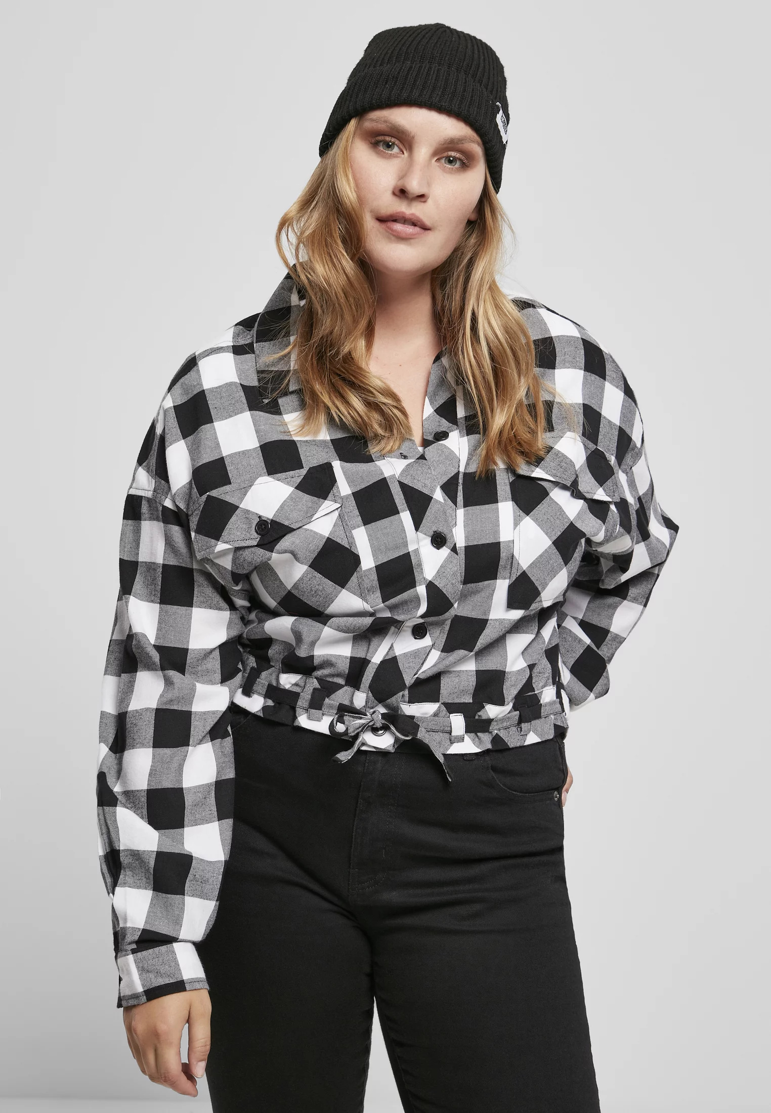Nápadná dámská košilová halenka s trendy šachovnicovým vzorem má vše, co potřebujete, abyste s radostí vykročili do stylového léta – živé barvy, vzrušující střih a dokonalý komfort nošení. Moderní top ukazuje tradiční ingredience košile, jako je límeček, manžetové rukávy, průběžný lem na knoflíky a dvě velké náprsní kapsy na knoflíky. Extra stylová vzpruha pochází z krátkého, ale širokého střihu, který končí přímo na bocích. Elegantní dřevorubecká košile pro sebevědomé ženy má navíc dvě stuhy pro úpravu pasu.