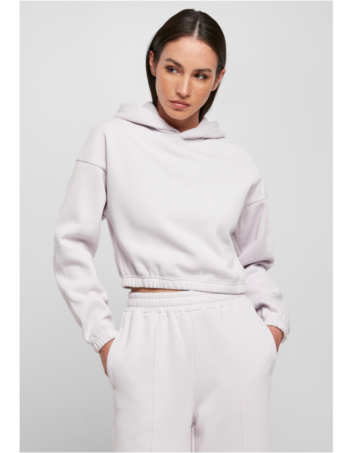 Sportovní a ležérní dámský svetr s kapucí – samozřejmě včetně kapuce a elastických manžet na rukávech a spodním lemu. Zvláště cool: krátký střih a pohodlný oversize střih se spadlými rameny. Dámská mikina s kapucí je vyrobena z hladkého česaného fleecu.