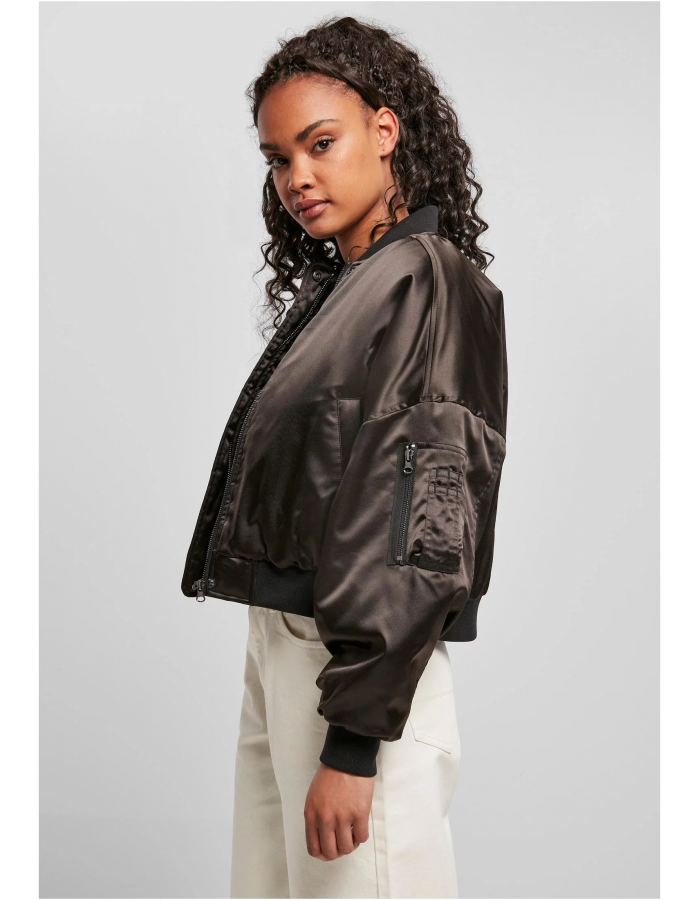 Dámská krátká oversized saténová bomber bunda černá 3XL
