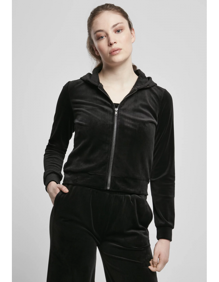 Tato dámská mikina s kapucí, vyrobená z pružného strečového sametu, vytváří útulné akcenty. Je vybavena zipem a kapucí a širokými elastickými manžetami na rukávech a spodním lemu. Pro úspěšný přechod do módního zvýraznění je střih extra oříznutý. Sametová mikina s kapucí nabízí pravidelný střih.