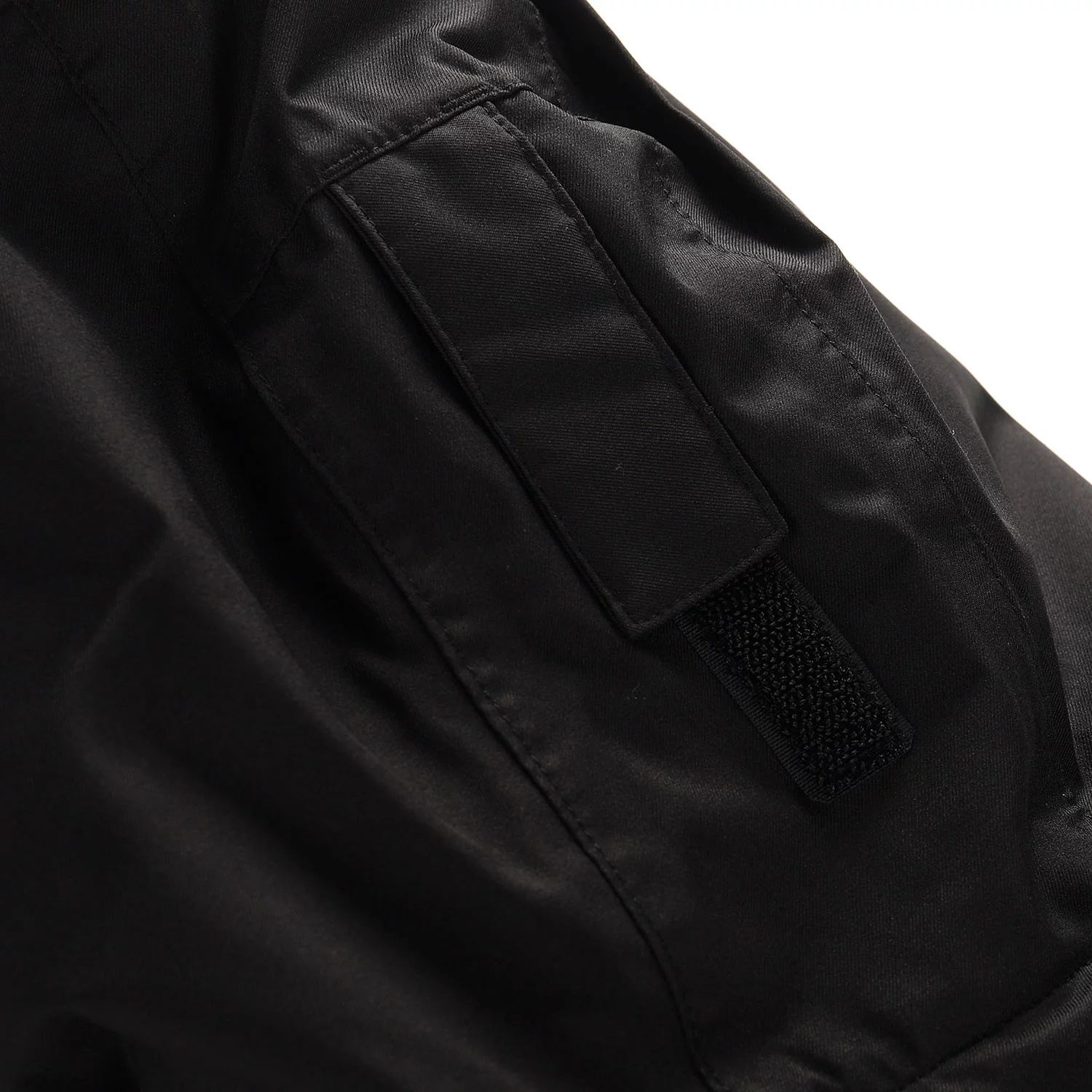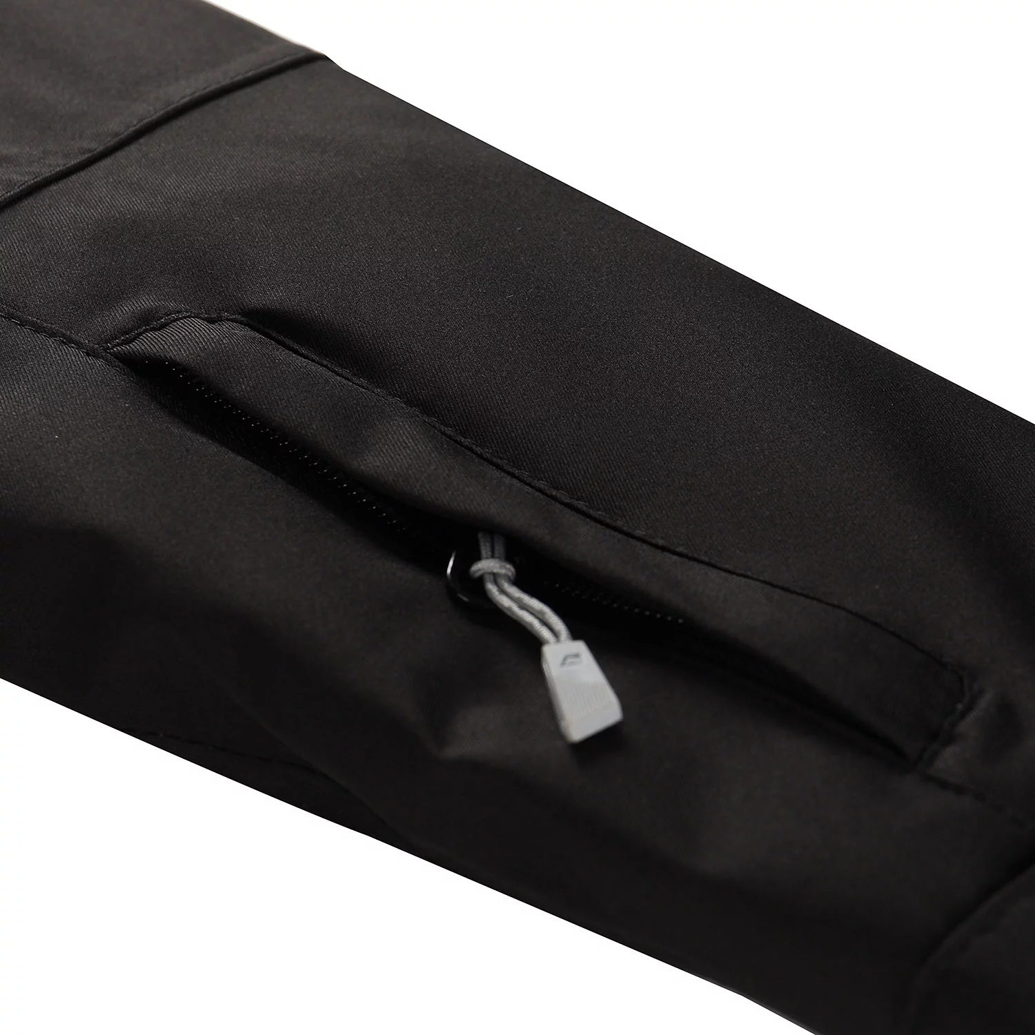 Rukávy mají nastavitelné manžety na suchý zip, což umožňuje jejich přizpůsobení podle rukavic nebo osobních preferencí. Elastické manžety navíc disponují otvory na palce, které zabraňují posunu rukávů a zvyšují tepelný komfort. Bunda nabízí dostatek úložného prostoru díky dvěma hlavním kapsám, dvěma náprsním kapsám, kapse na skipass a vnitřní síťované kapse na brýle.