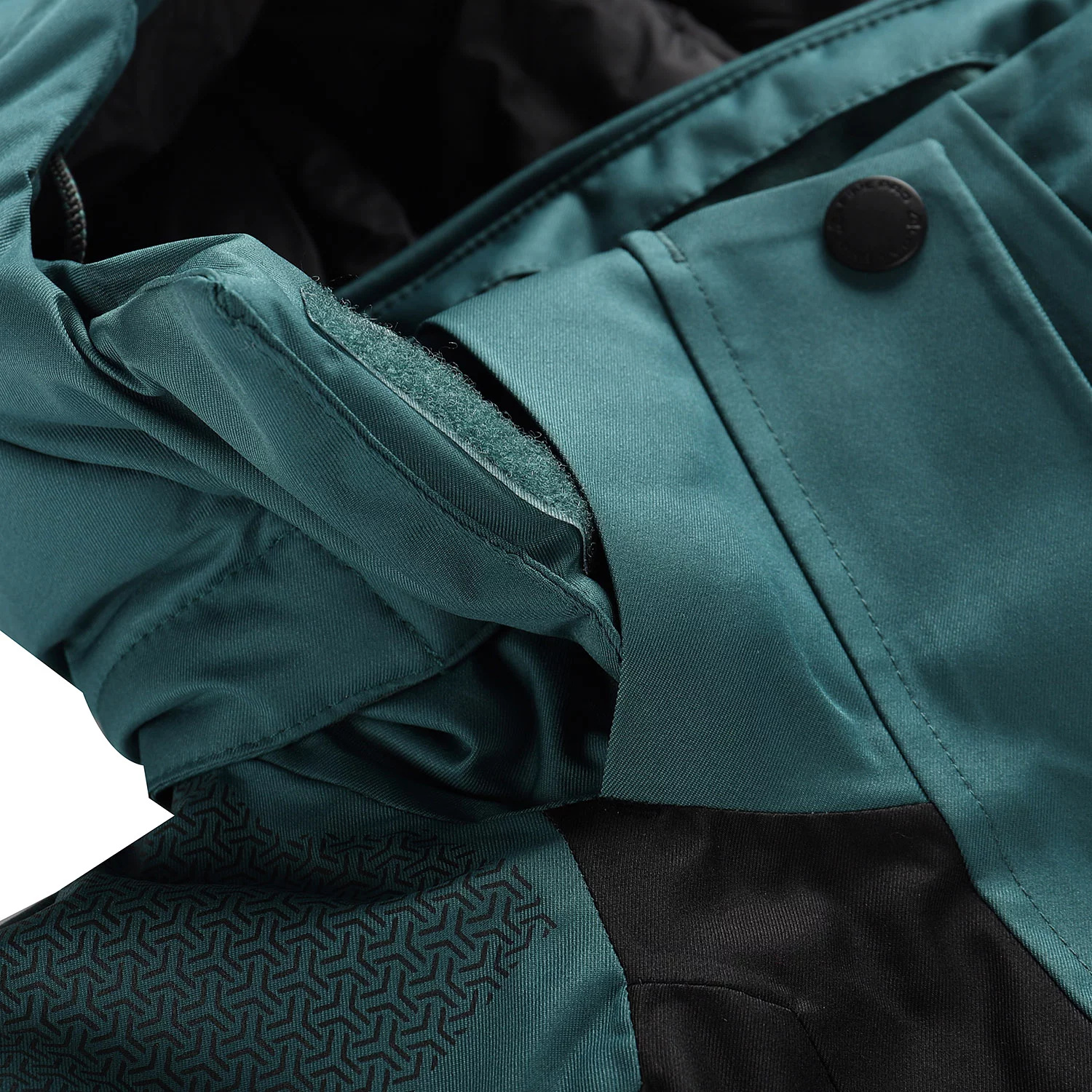 Bunda má polopřiléhavý střih a spodní lem se stahováním. Nabízí celkem sedm kapes – včetně kapsy na skipas, brýle i vnitřní kapsy na zip – a praktickou klíčenku v kapse. Rukávy jsou nastavitelné suchým zipem, doplněné vnitřní manžetou s otvorem na palec. Odepínatelný sněhový pás s elastickou vsadkou chrání před vnikem sněhu a bunda se dá připnout ke kalhotám.