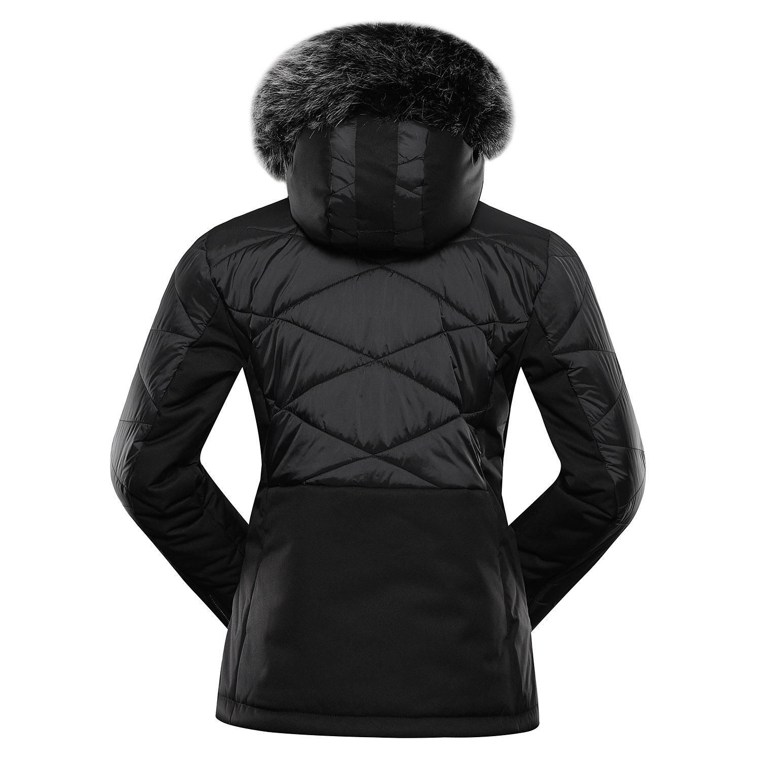 Dámská lyžařská bunda NADDRA od české značky ALPINE PRO je ušita z embosovaného, pružného materiálu s membránou PTX SNOW a úpravou DWR, která zajišťuje vodní sloupec 10 000 mm a paropropustnost 10 000 g/m²/24 h. Díky tomu je bunda nepromokavá, prodyšná a odolná vůči větru.