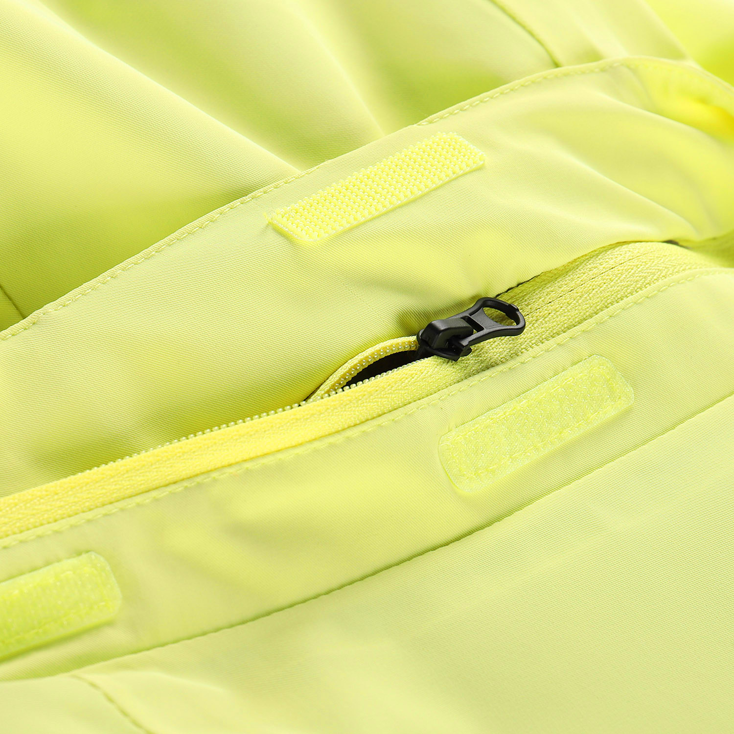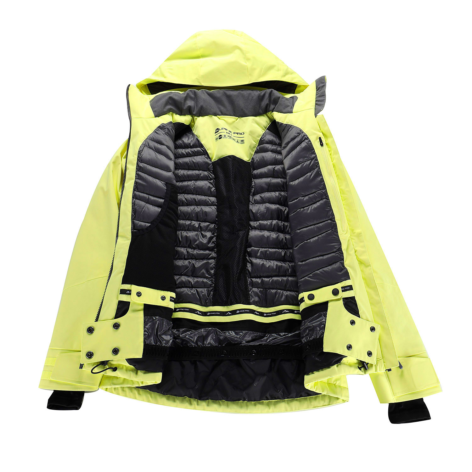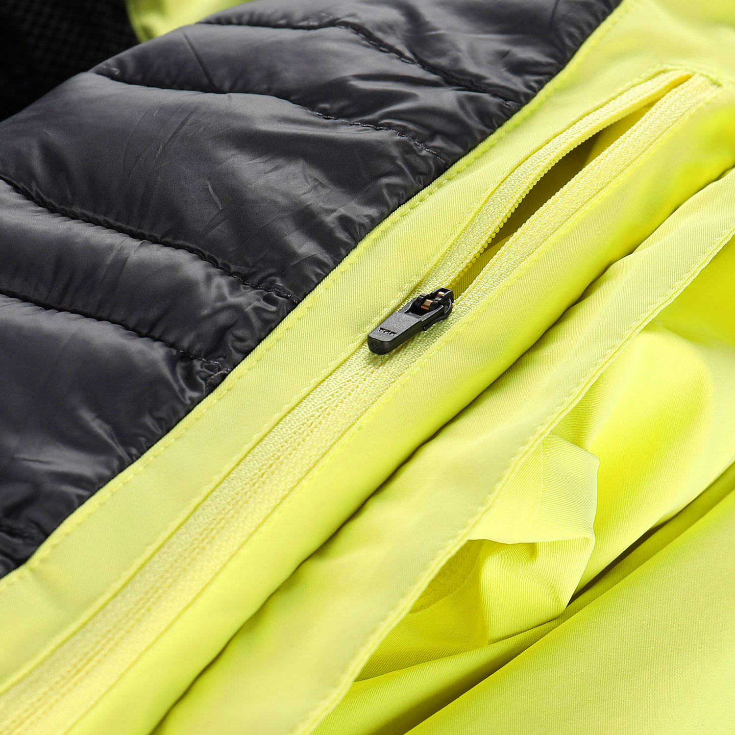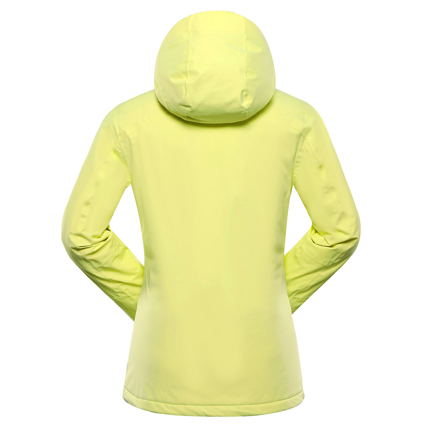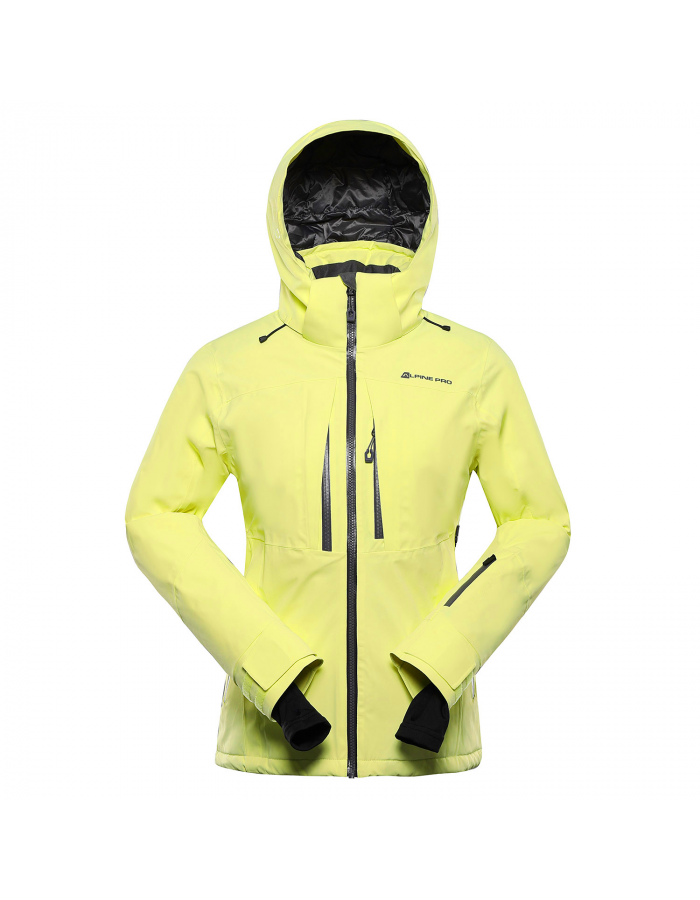 Střední hřejivá výplň a kontrastní prošívaná podšívka se postarají o tepelný komfort, zatímco přiléhavý střih krásně zvýrazní ženskou siluetu. Bunda má odepínatelnou kapuci se stahováním, voděodolné zipy, odvětrávání v podpaží, anatomicky tvarované rukávy se stahováním na suchý zip a vnitřní elastickou manžetou s otvorem na palec. Odepínatelný sněhový pás, prodloužený zadní díl a regulace šířky spodní části zajišťují pohodlí při pohybu i dokonalou ochranu před sněhem. Praktické řešení doplňuje sedm kapes – na skipas, brýle i drobnosti – všechny s voděodolnými zipy. Silikonové potisky, kontrastní detaily a delší taháčky zipů dávají bundě moderní, sportovně-elegantní vzhled.