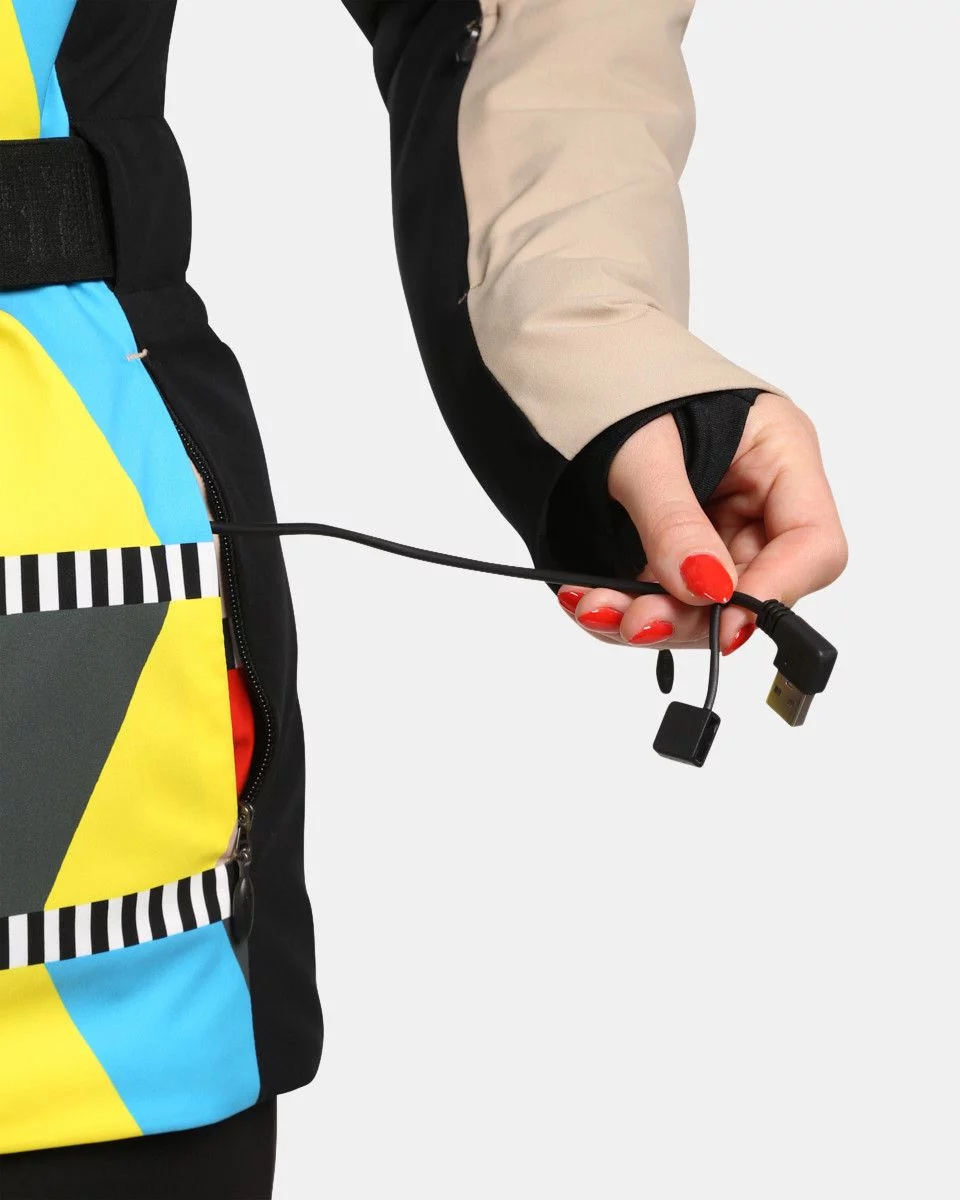 Oslnivá elegancí a inovativním designem, se zabudovaným vyhřívacím systémem, zimní lyžařská bunda Kilpi CLAIR-W vás zahřeje a vaše okolí zaujme na první pohled. Integrovaný systém vyhřívání, ovládaný jednoduše pomocí tlačítka na paži. Stačí dlouze stisknout tlačítko a vybrat si ze tří teplotních režimů. Napájení pomocí powerbanky o síle 10 000 mAh do USB konektoru v kapse bundy, vám zajistí teplo během celého dne. Powerbanka není součástí balení. Topné panely jsou umístěny na zádech a na hrudníku. Materiál SIBERIUM s vodním sloupcem 10 000 mm/m2/24h a podlepené švy na ramenou a kapuci vás udrží v suchu i v nejnáročnějších podmínkách. Sportovní střih v kombinaci s elastickou podšívkou vám zaručí volnost při pohybu, syntetická výplň vás příjemně zahřeje. Odnímatelný protisněhový límec se silikonovým páskem proti vyhrnování, vás ochrání před vniknutí sněhu pod bundu. Detaily, jako je hebký mikrofleece uvnitř vysokého límce a odepínatelná kapuce s luxusní syntetickou kožešinou, dodávají bundě sportovní eleganci. Pásek s kovovou sponou vyzdvihne pas, zipy na rukávech a stahovadlo na spodním lemu bundy vám umožní přizpůsobit si bundu podle vašeho pohodlí. S rukávovou kapsou na skipass, vnitřní kapsou na brýle a zipovou kapsičkou na cennosti máte vše, co potřebujete, po ruce.Bunda má moderní celopotištěný design, který můžete kombinovat s našimi lyžařskými softshellovými kalhotami TORIEN-W. Buďte na svahu v pohodlí a přitom nepřehlédnutelní.Návod k použití a praní bundy s integrovaným vyhřívacím systémem naleznete zde.