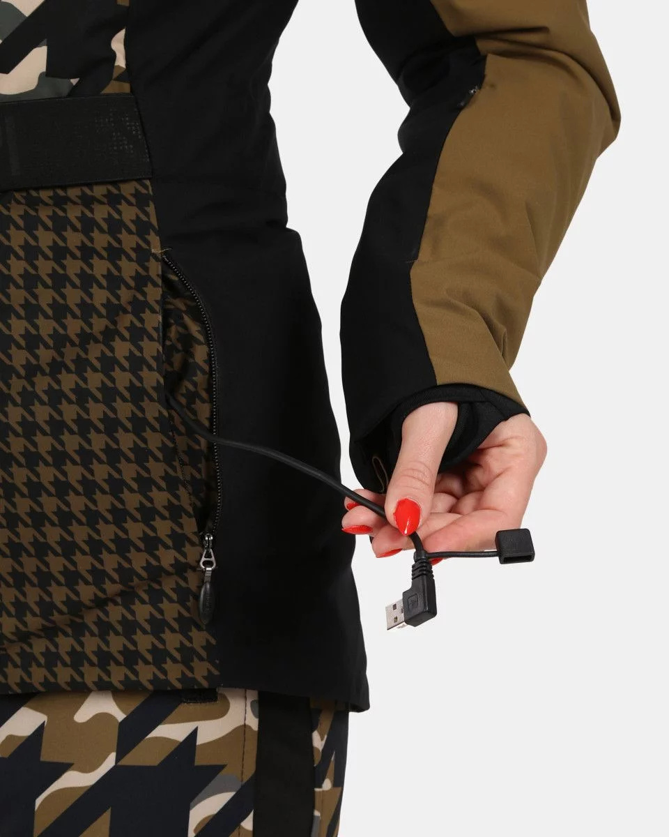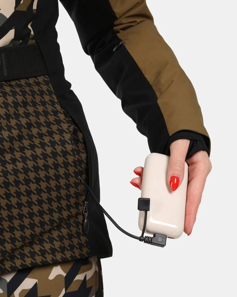 Oslnivá elegancí a inovativním designem, se zabudovaným vyhřívacím systémem, zimní lyžařská bunda Kilpi CLAIR-W vás zahřeje a vaše okolí zaujme na první pohled. Integrovaný systém vyhřívání, ovládaný jednoduše pomocí tlačítka na paži. Stačí dlouze stisknout tlačítko a vybrat si ze tří teplotních režimů. Napájení pomocí powerbanky o síle 10 000 mAh do USB konektoru v kapse bundy, vám zajistí teplo během celého dne. Powerbanka není součástí balení. Topné panely jsou umístěny na zádech a na hrudníku. Materiál SIBERIUM s vodním sloupcem 10 000 mm/m2/24h a podlepené švy na ramenou a kapuci vás udrží v suchu i v nejnáročnějších podmínkách. Sportovní střih v kombinaci s elastickou podšívkou vám zaručí volnost při pohybu, syntetická výplň vás příjemně zahřeje. Odnímatelný protisněhový límec se silikonovým páskem proti vyhrnování, vás ochrání před vniknutí sněhu pod bundu. Detaily, jako je hebký mikrofleece uvnitř vysokého límce a odepínatelná kapuce s luxusní syntetickou kožešinou, dodávají bundě sportovní eleganci. Pásek s kovovou sponou vyzdvihne pas, zipy na rukávech a stahovadlo na spodním lemu bundy vám umožní přizpůsobit si bundu podle vašeho pohodlí. S rukávovou kapsou na skipass, vnitřní kapsou na brýle a zipovou kapsičkou na cennosti máte vše, co potřebujete, po ruce.Bunda má moderní celopotištěný design, který můžete kombinovat s našimi lyžařskými softshellovými kalhotami TORIEN-W. Buďte na svahu v pohodlí a přitom nepřehlédnutelní.Návod k použití a praní bundy s integrovaným vyhřívacím systémem naleznete zde.
