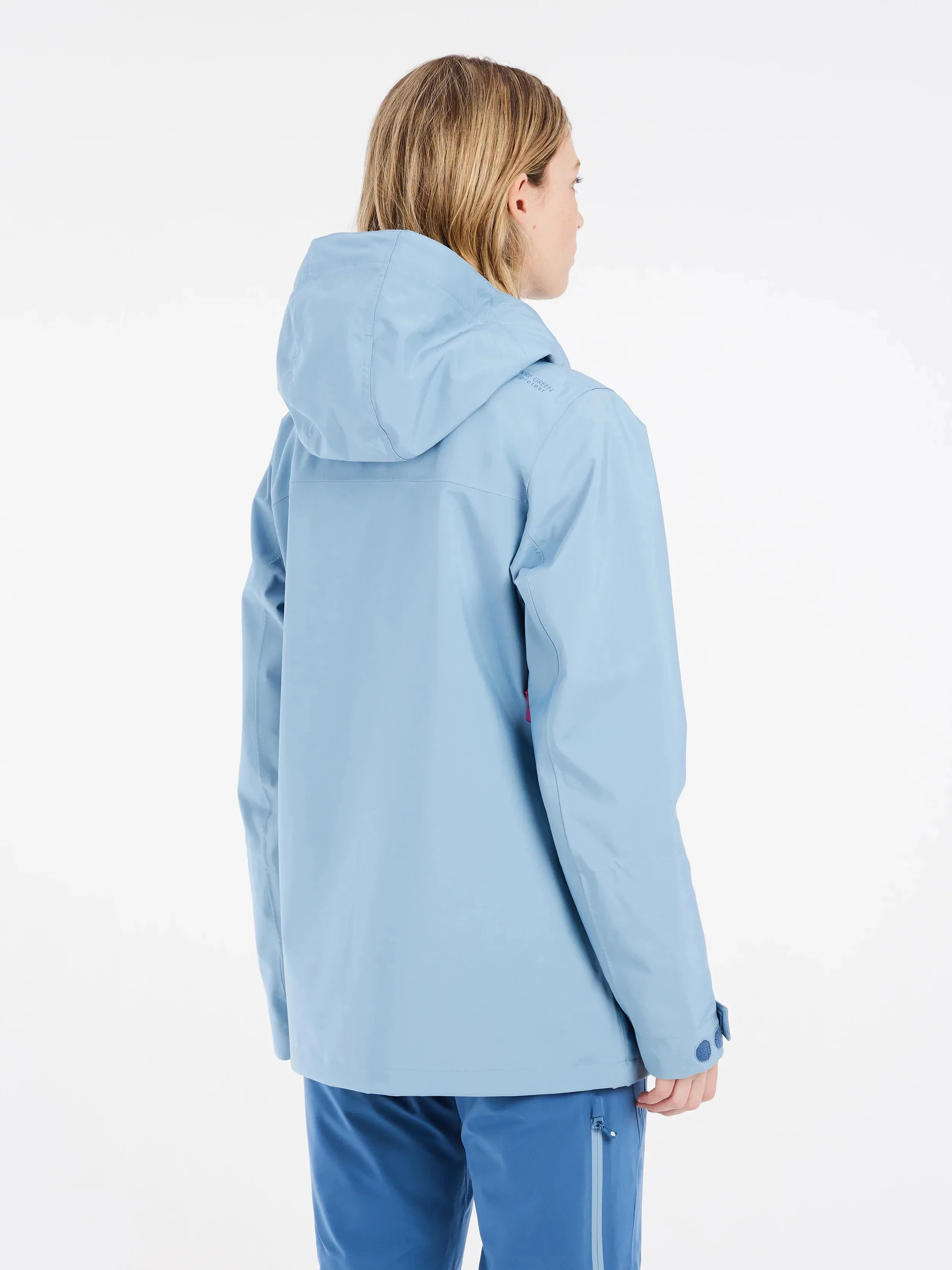 Bunda PRTMOOSE 3L má běžný střih a dlouhou délku. Vnitřní manžety s otvorem na palec a vnější manžety se suchým zipem jsou praktické během rušných dnů na svahu.