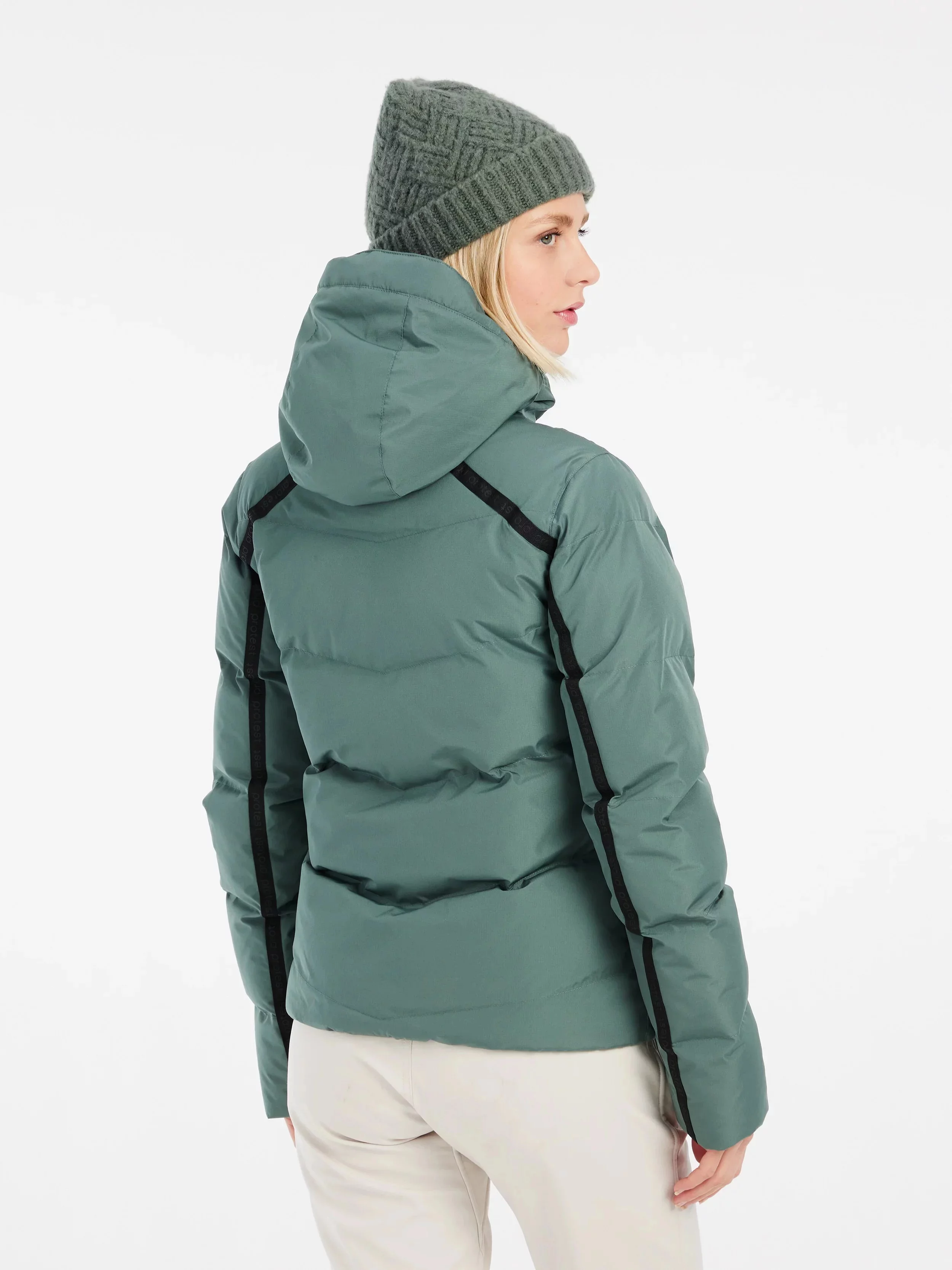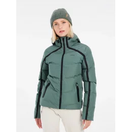 Její elegantní jednobarevný design je oživen výraznými pruhy na rukávech, které dodávají šmrnc vašemu vzhledu na svahu.
