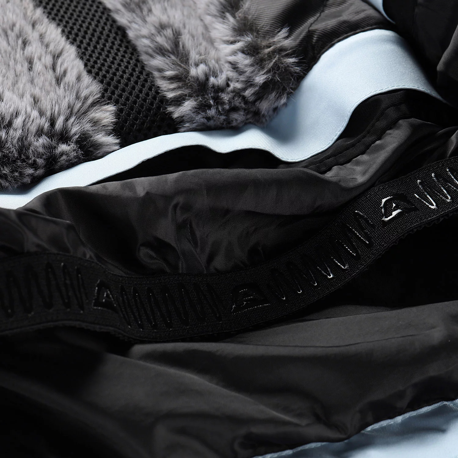 Odepínatelná sněhová manžeta, která zabraňuje pronikání sněhu pod oděv. Ve spodní části je našita elastická protismyková guma.