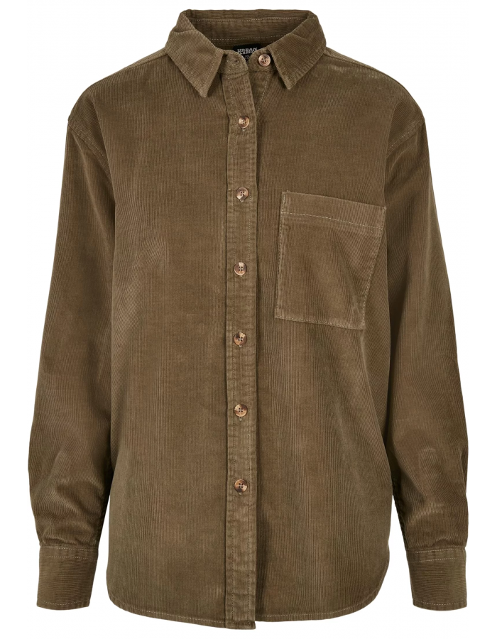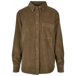 Uvolněná dámská košile má klasický, téměř mužský střih a kombinuje jej s atraktivním bavlněným manšestrovým materiálem. Stylovými ingrediencemi jsou jemný límec, úzký knoflík a manžety s knoflíky. Elegantní košile těží z dalších rafinovaných tónů, jako jsou našité náprsní kapsy, které jsou vybaveny knoflíky vyrobenými z pravé rohoviny. Díky širokému střihu a příčnému švu přes ramena se košile velmi příjemně nosí.