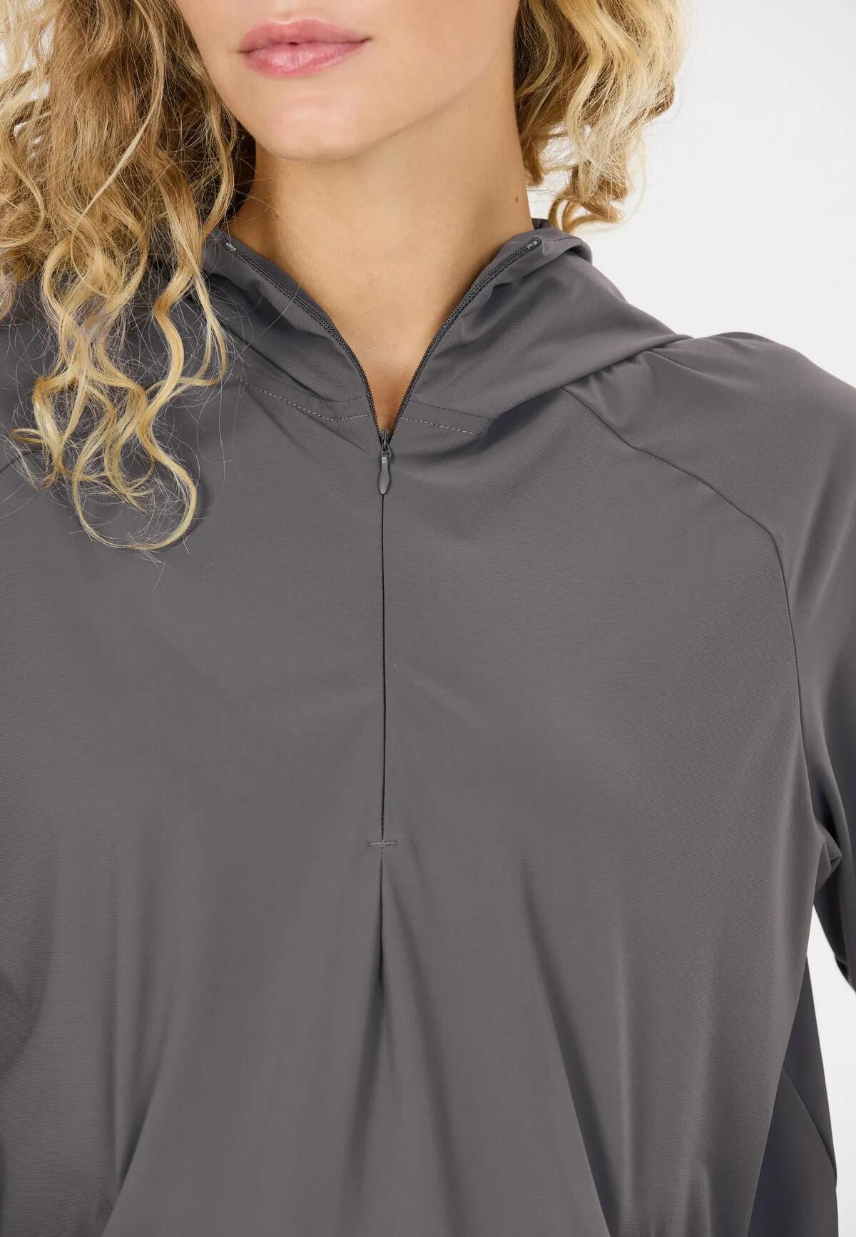 Poloviční zip usnadňuje oblékání a umožňuje regulaci teploty.
