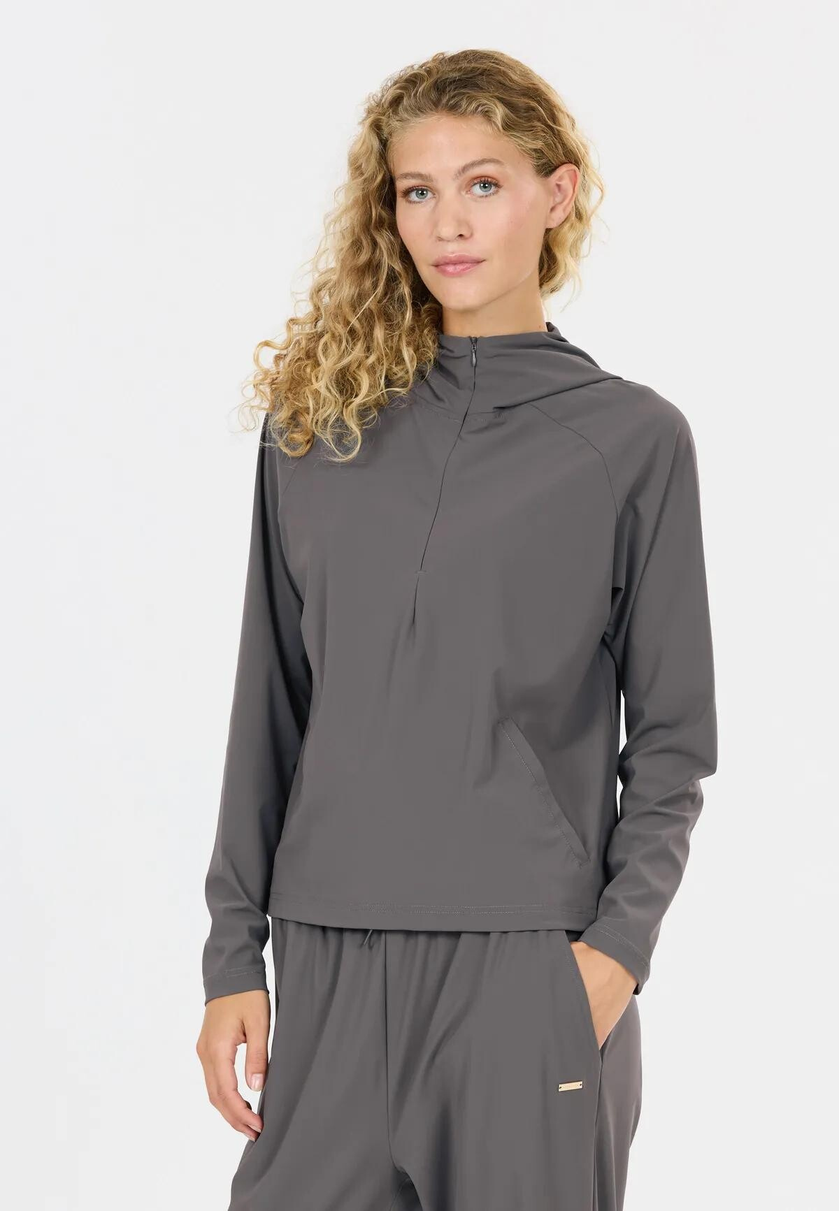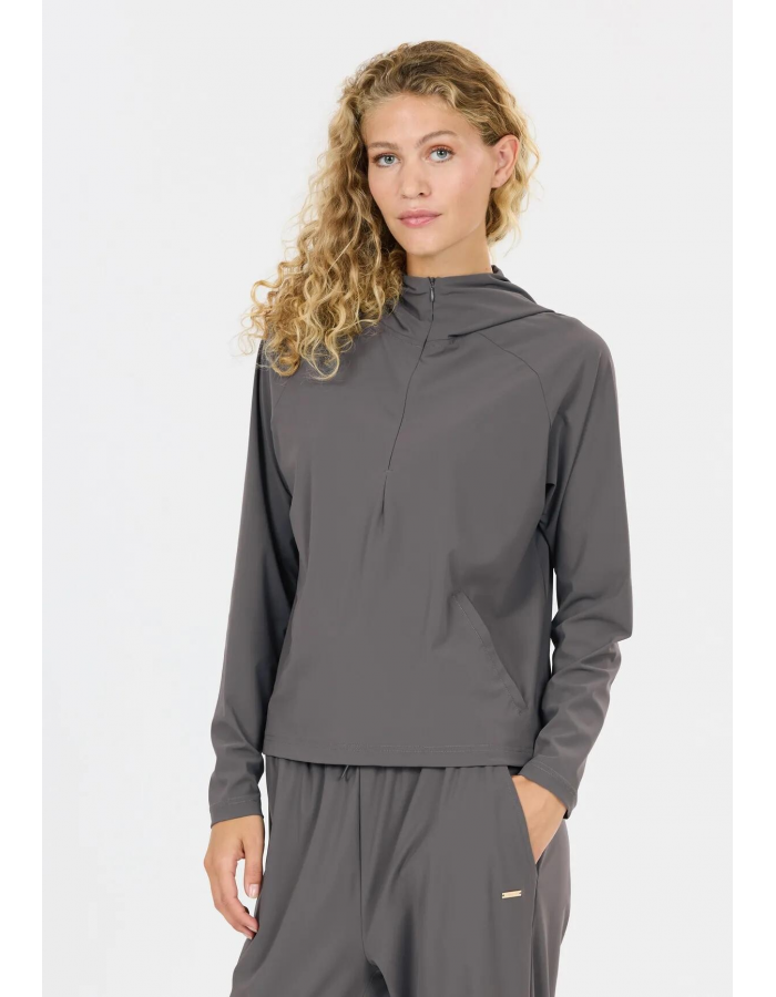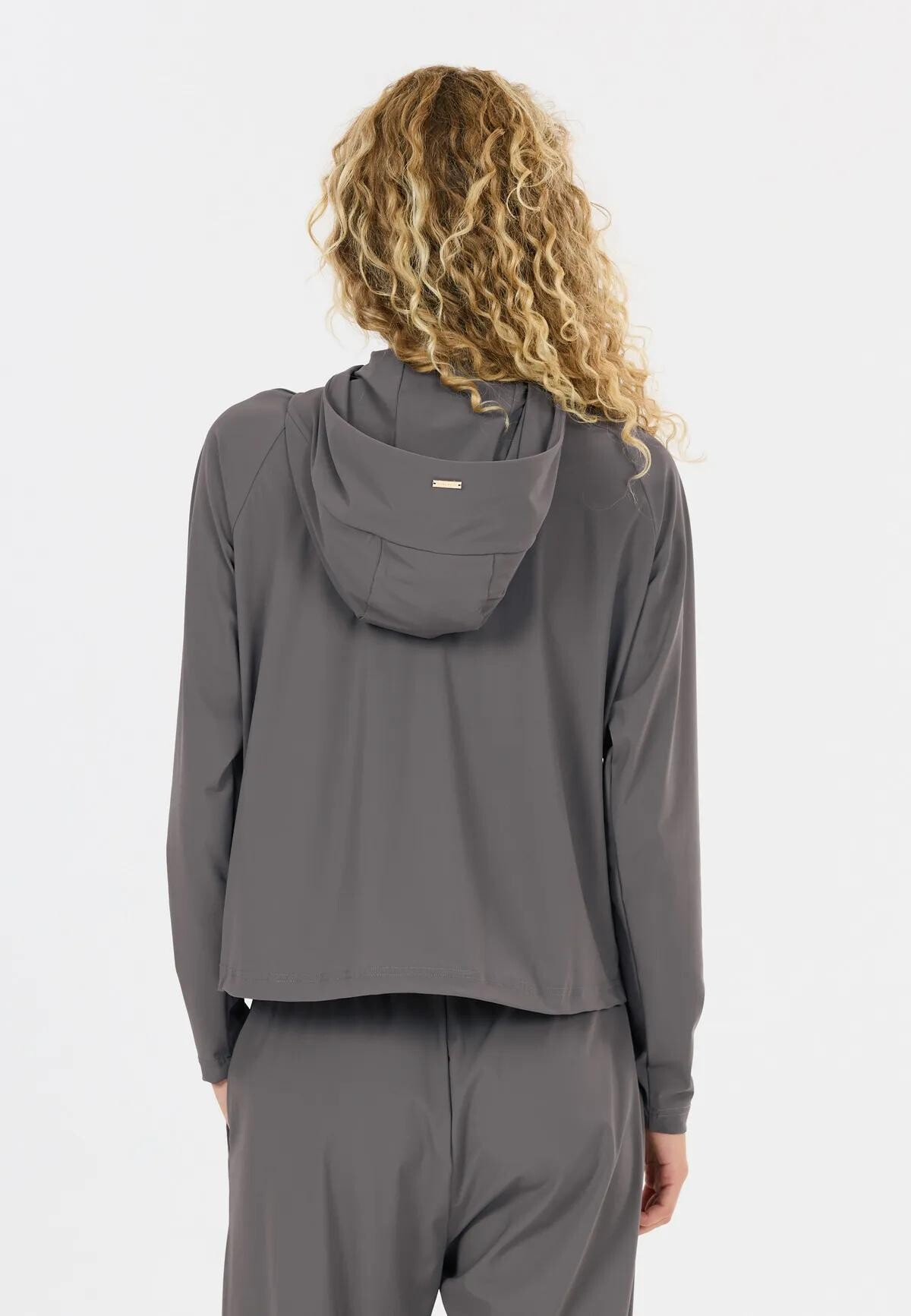 Tato dámská strečová mikina s kapucí nabízí vysoký komfort a volnost pohybu při každodenních i aktivních dnech.