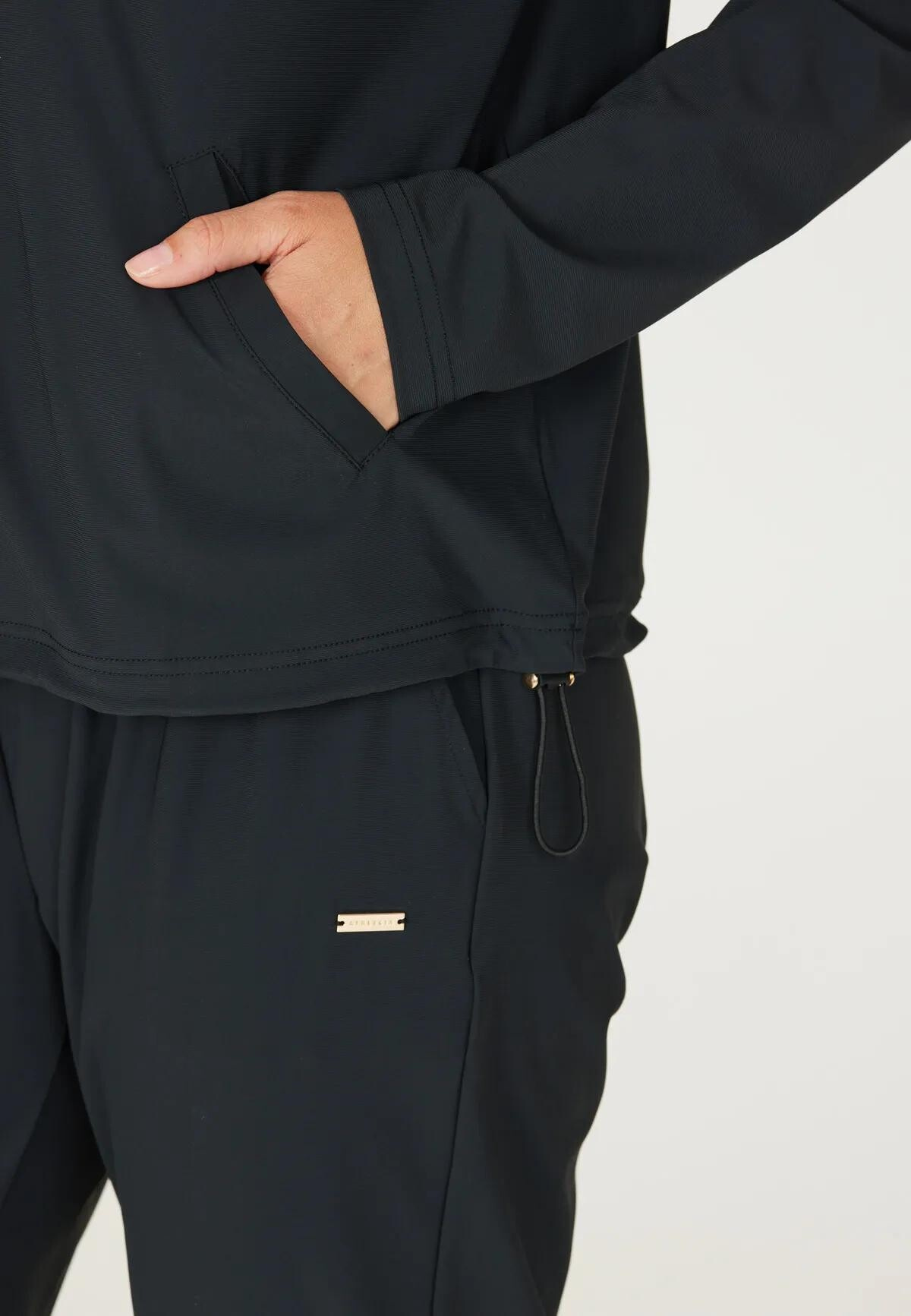 Díky nastavitelnému spodnímu lemu, kapuci se stahováním a elastickým manžetám se snadno přizpůsobí postavě i aktuálním podmínkám.