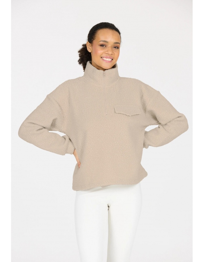 Praktický poloviční zip dodává moderní vzhled, usnadňuje oblékání a umožňuje regulovat odvětrávání.